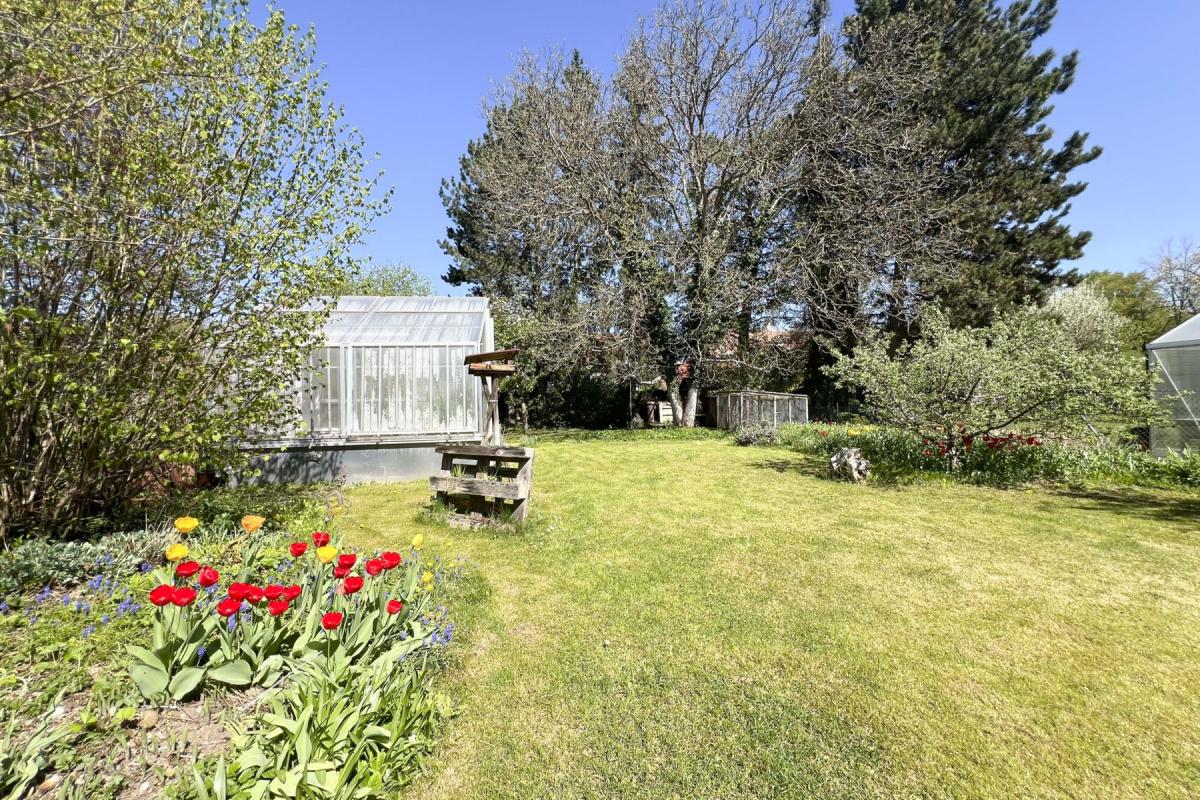 Die Nordhälfte überzeugt mit einem offenen, hellen Grundriss im spektakulären Split-Level-Stil, einer großen Fensterfront mit Zugang zur erhöhten Terrasse und herrlichem Blick in den liebevoll angelegten Garten. Vier Schlafzimmer, eine individuell gefertigte Schreinerküche mit Gartenzugang, zwei modernisierte Bäder sowie ein ausgebauter Keller mit Sauna, Waschkeller, Werkstatt und großer Abstellkammer bieten viel Platz für die ganze Familie. Zusätzlich gehören ein modernes 16 m² großes Gewächshaus, ein Hühnerhaus und ein Metallcontainer zur praktischen Gartennutzung dazu.