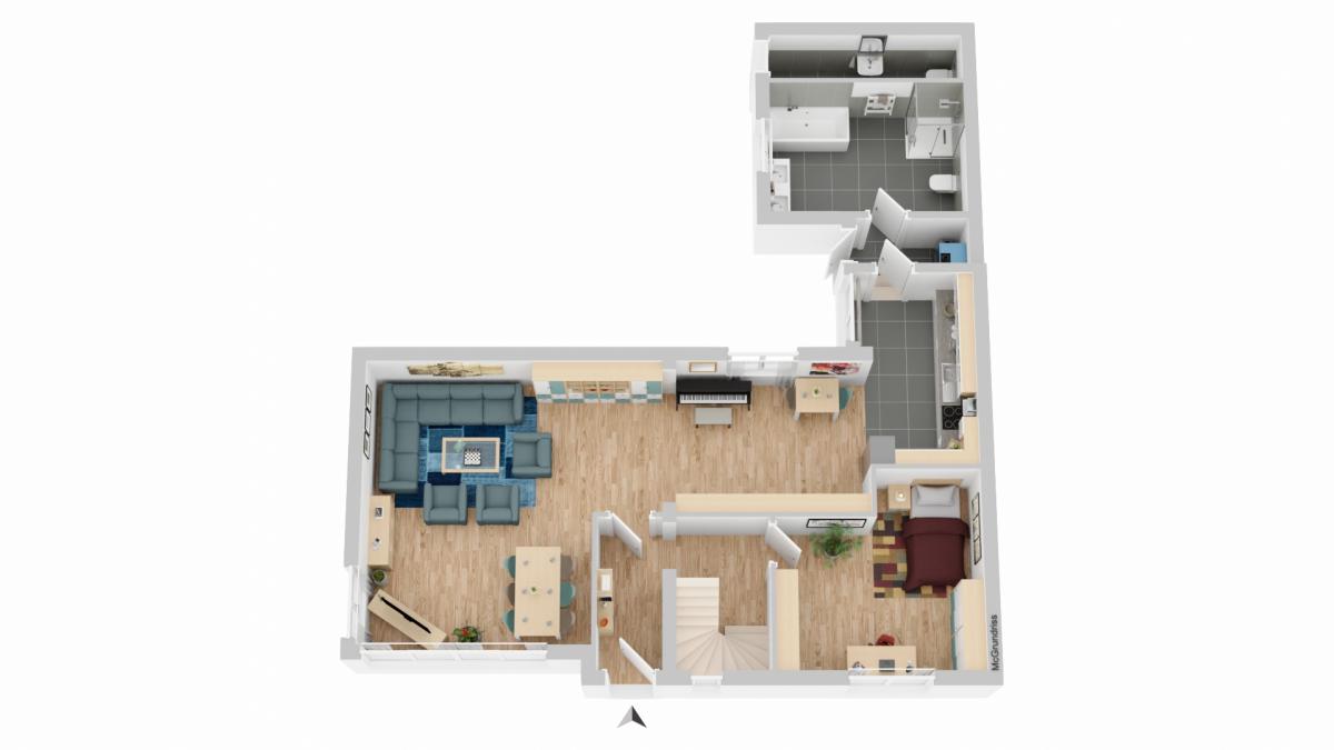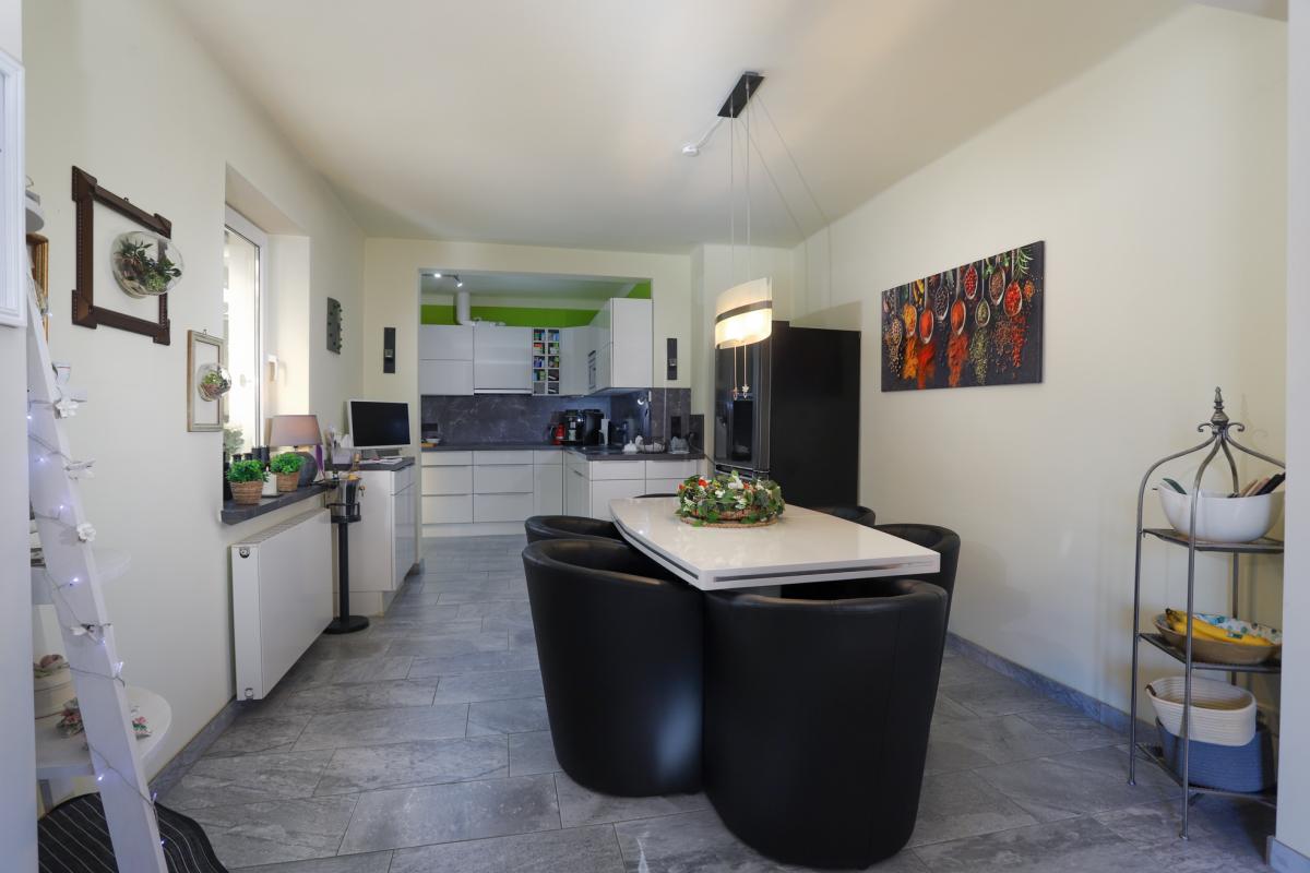 Sonnig und ruhig ist es diesen Sonntagmorgen.... Gerd, bringst du die Brötchen mit auf die Terrasse? Wir frühstücken nochmal draußen. Das Wetter ist so schön, sagt Gerda und lehnt sich zurück. Nun ist es soweit. Ein neuer Lebensabschnitt soll beginnen und eine neue Familie wird für die 115 m2 Wohnfläche, mit dem liebevoll gepflegten Garten, auf 554 m2 gesucht. Hier haben Sie viel Zeit verbracht, die Kinder groß gezogen und wilde Partys gefeiert. Auch in den letzten 20 Jahren viel saniert, renoviert und Instand gehalten. Letztendlich sind ein toller, großer Wohn-, Essbereich mit durchdachter Küche, ein Gäste/Arbeitszimmer und ein geräumiges Bad auf der unteren Etage entstanden. Der hell gestaltete Wohnbereich verfügt über eine Fußbodenheizung und einen Kamin, an dem so manche Abende gelacht, gespielt und relaxt wurde. Hier war immer was los, resümiert Gerda und verweist auch gleich noch einmal auf den liebevoll gestalteten Essbereich vor der Küche. Diese ist mit modernen Geräten ausgestattet und lässt eigentlich keine Wünsche offen. Das Badezimmer mit Dusche und Badewanne rundet neben der von 2017 stammenden Heizung das Erdgeschoss ab.