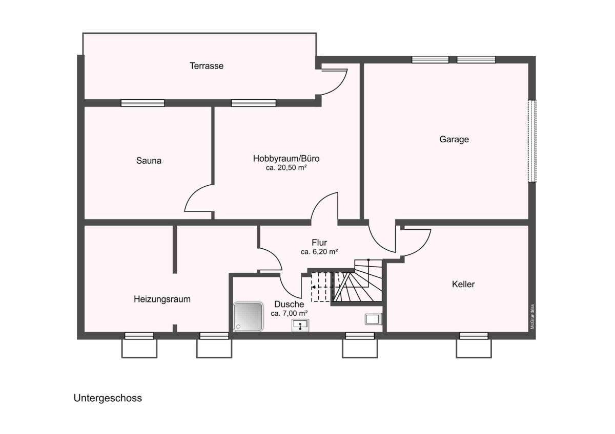 Rund 125m² Wohnfläche zuzüglich 33,70m² Nutzfläche im Untergeschoss, erstrecken sich über zwei Etagen und sind wie folgt aufgeteilt: