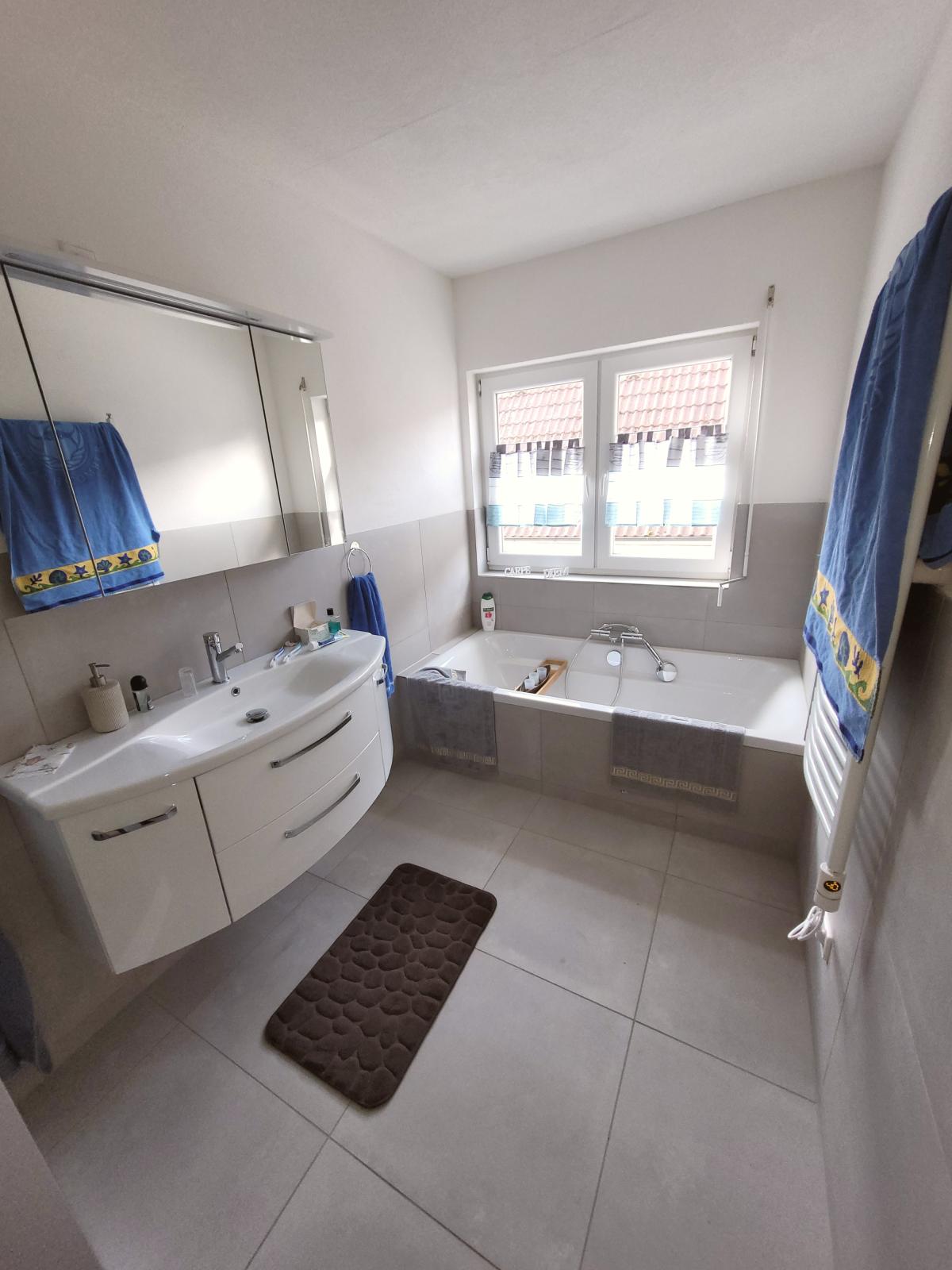 2-Zi.-Whg.: EBK, Fußbodenheizung mit Gas und Kaminofen, Wäscheschacht vom Bad in den Hauswirtschaftsraum, Einbauküche, Fliesen und Laminat