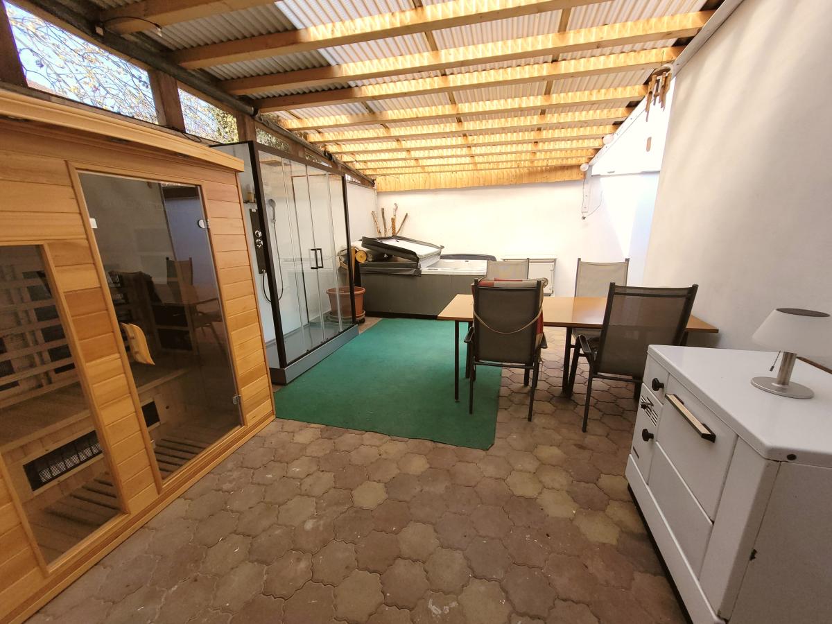 Wellnessbereich im überdachten, blickdichten Hof mit Sauna, Jacuzzi, Außendusche, Dampfdusche und Infrarotkabine