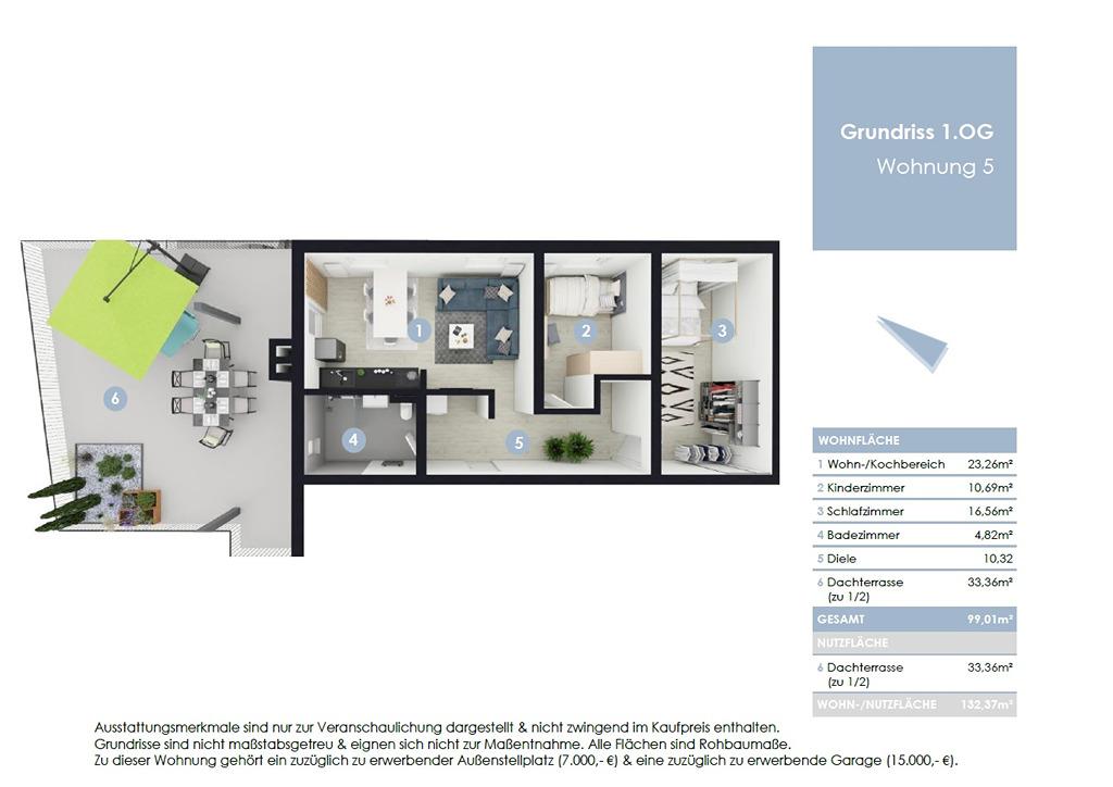 + Garage & Außenstellplatz (zzgl. 15.000,- € & 7.000,- €)