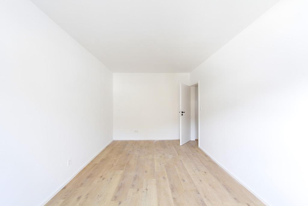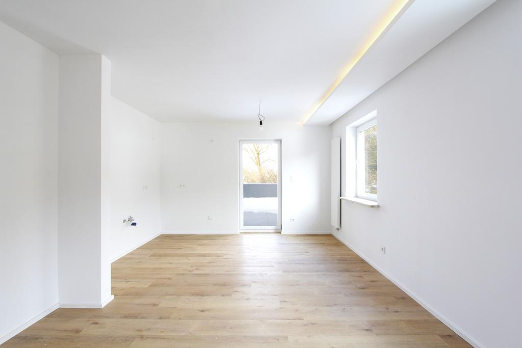 Bei Betreten Ihres neuen Zuhauses befinden Sie sich im Flur, der Sie offenherzig in den Wohn-, Ess- und Kochbereich führt. Von dort haben Sie ebenso Zugang zum Highlight der Wohnung, eine gut 67m² große Dachterrasse, teils überdacht vom großen Balkon der darüber liegenden DG-Wohnung. Neben zwei geräumigen Schlafzimmern dürfen Sie hier noch ein modernes Tageslicht-Badezimmer Ihr Eigen nennen, das mit Walk-In-Dusche und mattschwarzen Armaturen ausgestattet ist. In einer Nische im Flur findet eine Waschmaschine Platz.