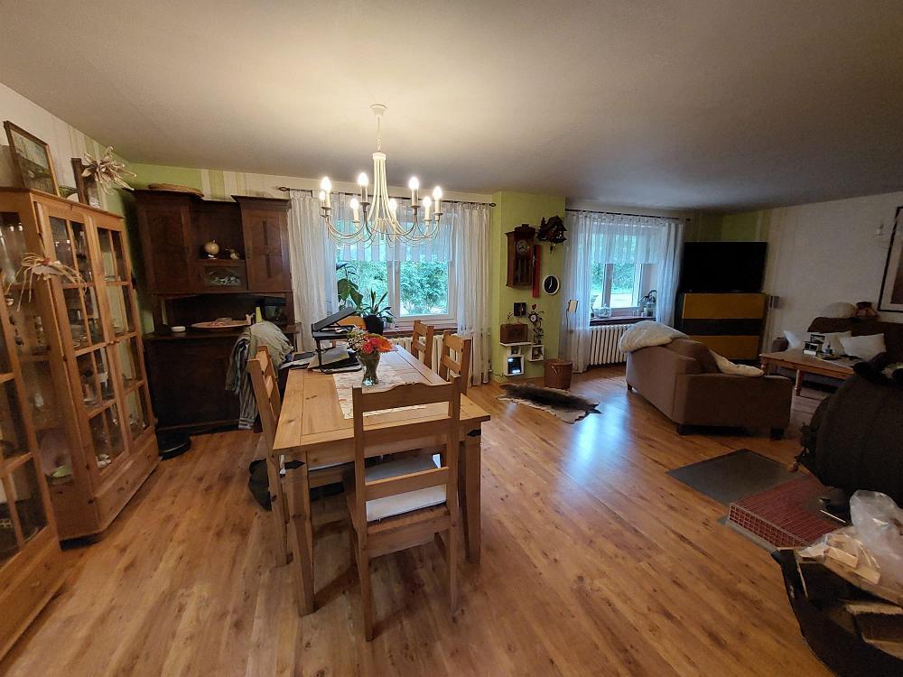 Der Innenbereich ist individuell und exklusiv gestaltet. Die Wohnfläche von ca. 240 m² erstreckt sich über drei Etagen. Im Erdgeschoß befinden sich die Küche und das Wohnzimmer. Das Wohnzimmer ist ein heller großzügig geschnittener Raum, in dem man sich rundum wohlfühlt. Ein wunderschöner Bullerjahn Kamin gibt diesen Raum ein ganz besonderes Flair. Mit diesem Kamin haben Sie die Möglichkeit, das gesamte Erdgeschoss zu beheizen.