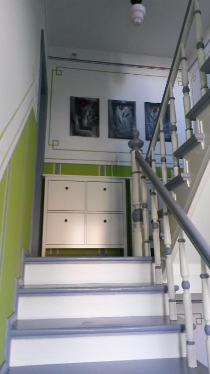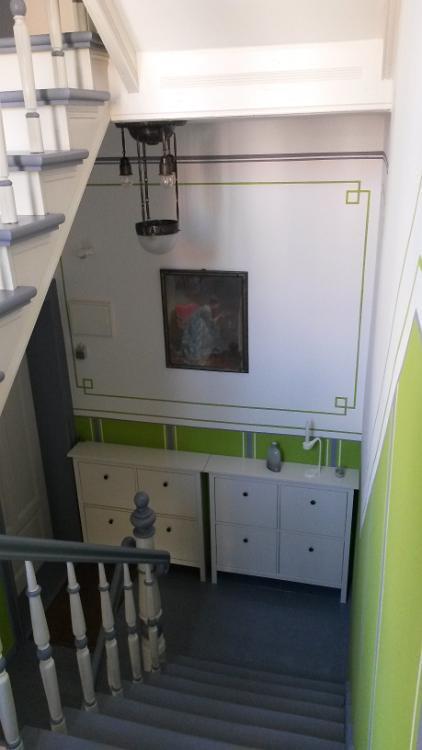 Ein eigenständiger Treppenaufgang führt in die oberen Geschosse.