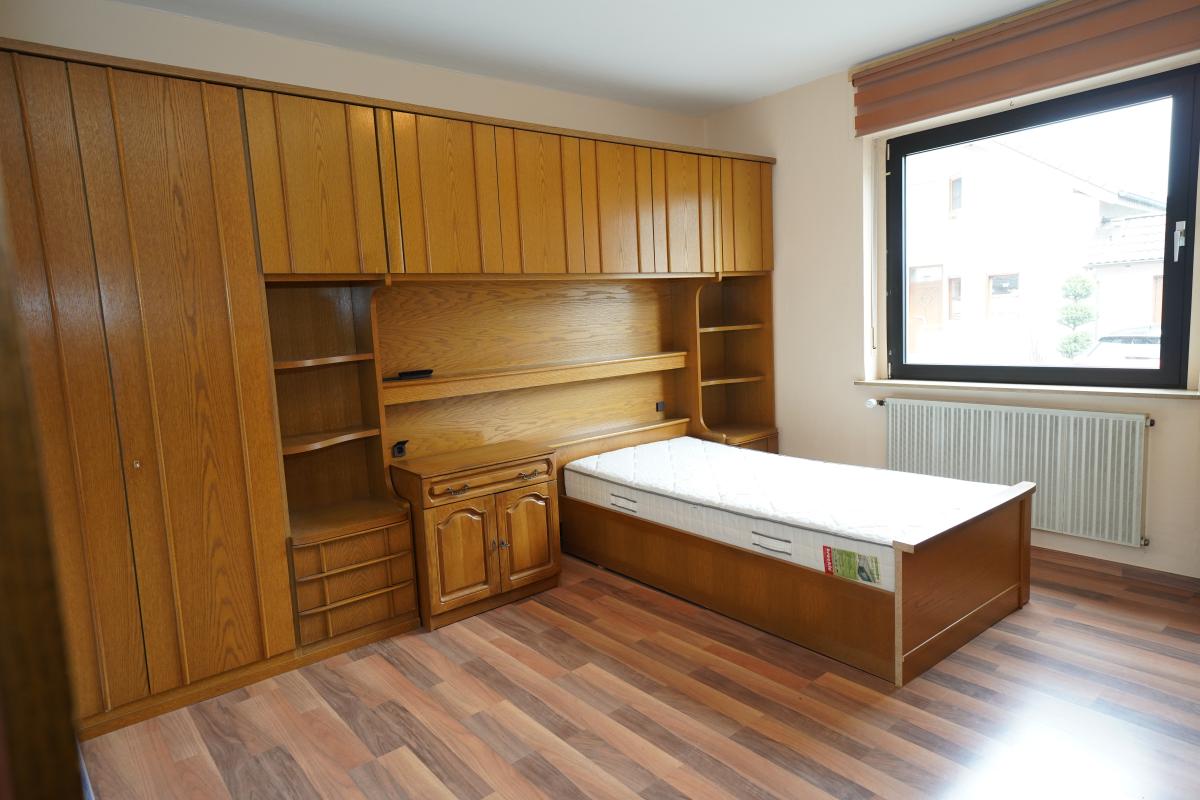 Die Einliegerwohnung verfügt über ein Schlafzimmer, ein Wohnzimmer mit Zugang zur Terrasse und dem Garten, eine Küche mit Einbauküche und ein Badezimmer.