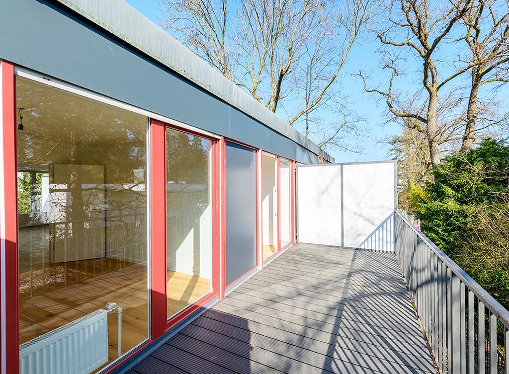 • Einbau neuer Terrassendielen im Erdgeschoss zum Garten sowie auf den Balkonen im Obergeschoss