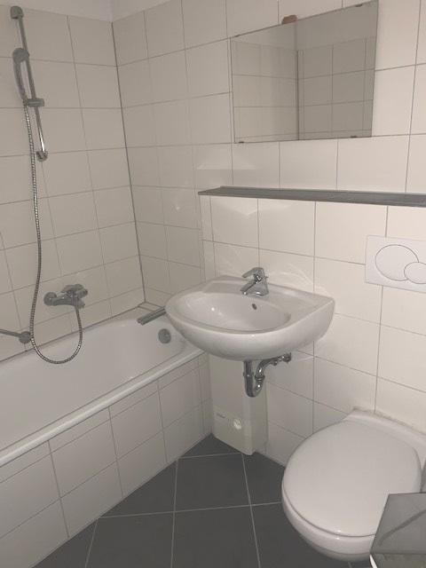 Die Wohnung ist mit einer Küchenzeile (inkl. Herd, Backofen und Spüle) ausgestattet, welche Freiräume für einen Kühlschrank sowie eine Wasch- oder Geschirrspülmaschine lässt. Das Vollbad ist innenliegend und hat weiße Wand- und dunkle Bodenfliesen. Alle Wohnräume sind mit einem Linoleum-Boden ausgelegt. Der Balkon bietet Platz für entspannte Stunden nach Feierabend.
