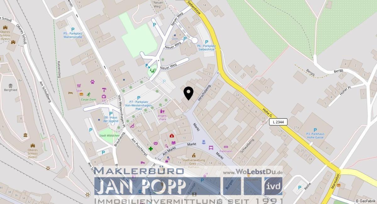 Das Objekt liegt im Stadtzentrum der Stadt Greiz am Von-Westernhagen-Platz zwischen Altstadtgalerie und Rathaus. Hiert befindet sich eine Passage, welche den von Westernhagenplatz mit dem Markt inkl. Rathaus verbindet.