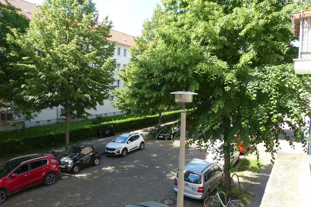 Trotz Stadtnähe ist es in unserer Straße schön ruhig und man hat einen wunderbaren Blick in die Gärten vor dem Haus.