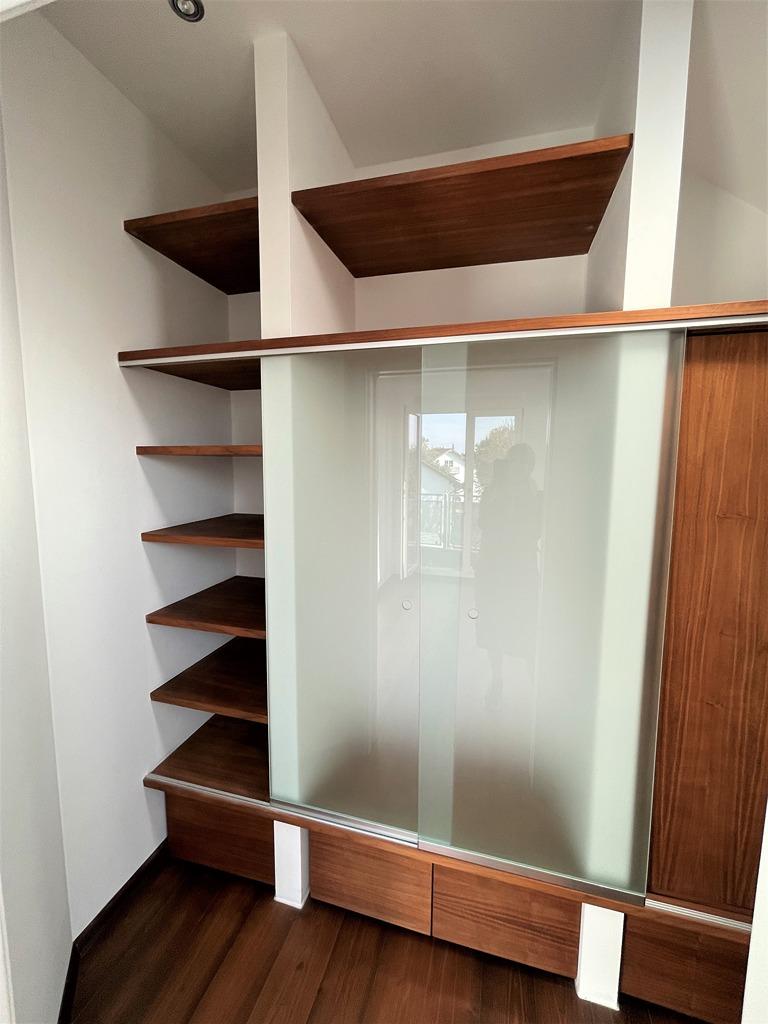 - Arbeitszimmer: Tresor, 2te Sprechanlage/Türöffner, Einbauschrank (Nußbaum) mit Glasschiebetüren
