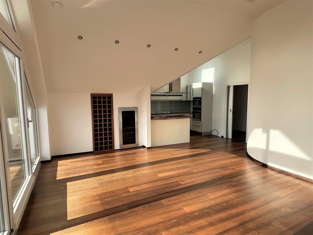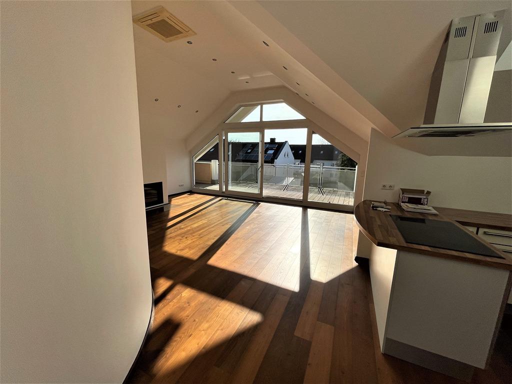 Die Wohnfläche beträgt 109,9 m². Die Wohnung verfügt über einen großzügigen Wohn-/Essbereich mit Küche und hochwertiger Einbauküche,Geräte: Küppersbusch) ca. 20m² große Dachterrasse (Westseite) mit Beleuchtung, Schlafzimmer mit seperater Ankleide (Tageslicht) und ein Arbeitszimmer, beider Zimmer mit Zugang zu einem zweiten Balkon. Die Balkone und die Dachterrasse sind mit Terrassendielen der Holzart Massaranduba ausgestattet.
