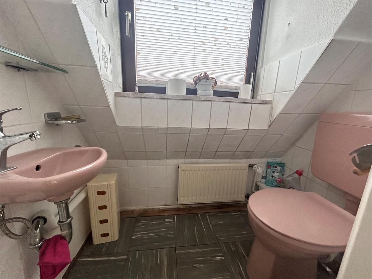 Doppelhaushälfte mit 2 Zimmern, Küche, Duschbad, WC, Vollkeller, Garage, Geräteschuppen.