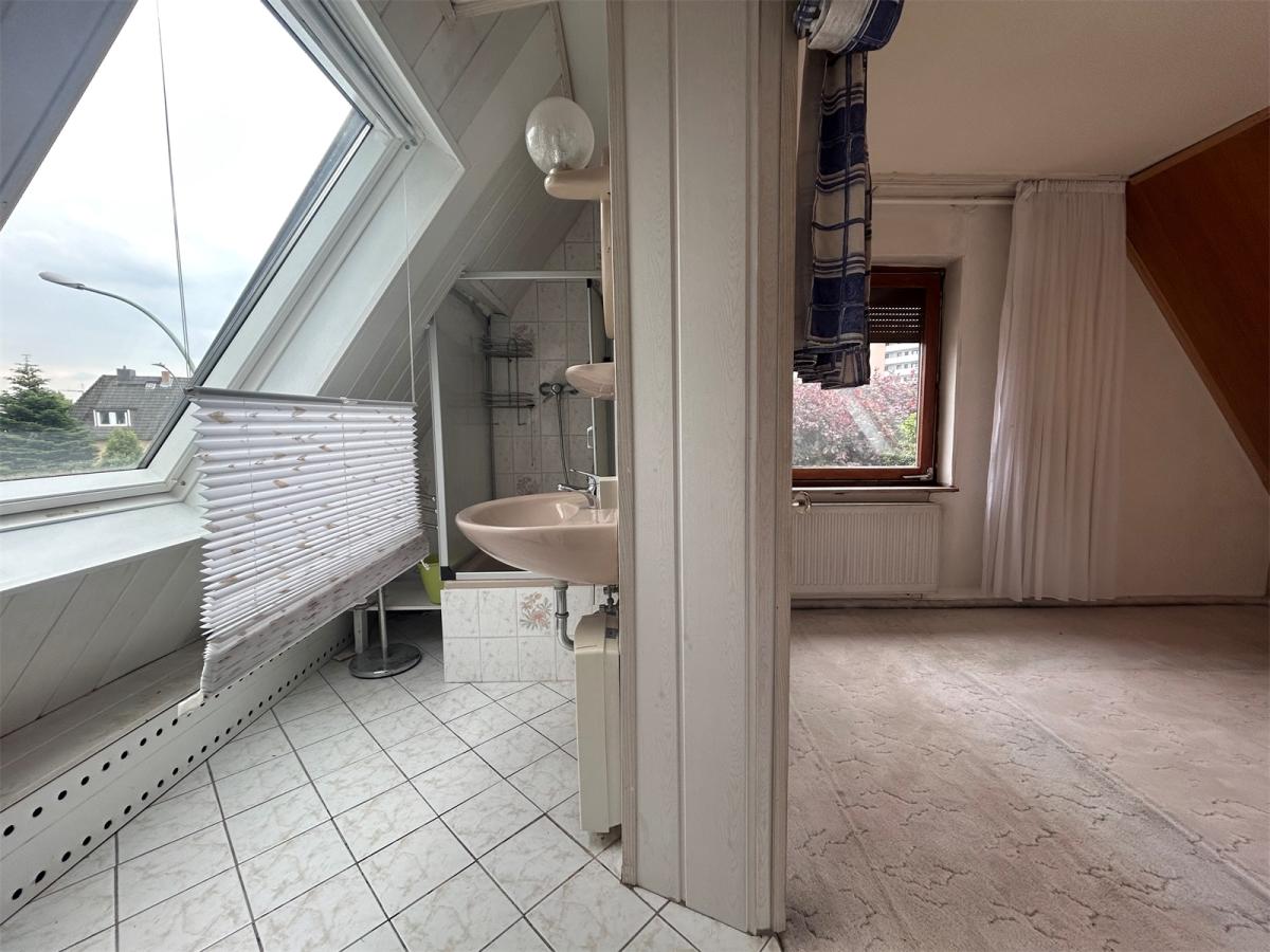 Beim Betreten der Doppelhaushälfte gelangen Sie in den Eingangsbereich. Zur linken Seite befindet sich die Küche, die mit einer Einbauküche im Landhausstil ausgestattet ist und über ausreichend Platz für eine Frühstücksecke verfügt. Geradeaus führt der Weg in das helle und geräumige Wohnzimmer, das direkten Zugang zur Terrasse und dem weitläufigen Garten bietet. Diese Kombination aus Innen- und Außenbereich eignet sich perfekt für gesellige Abende und entspannte Stunden im Freien mit Familie und Freunden. Vom Flur aus gelangen Sie in den Keller sowie in das Dachgeschoss. Im Dachgeschoss führt ein Flur zu dem gemütlichen Schlafzimmer sowie dem zu dem Duschbad und separaten WC.