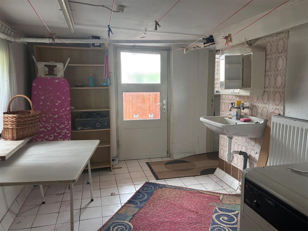 Der Keller ist ebenfalls von außen begehbar und bietet zusätzliche Nutzfläche mit drei Räumen, die vielfältig genutzt werden können – sei es als Lagerraum, Hobbyraum oder Waschküche.