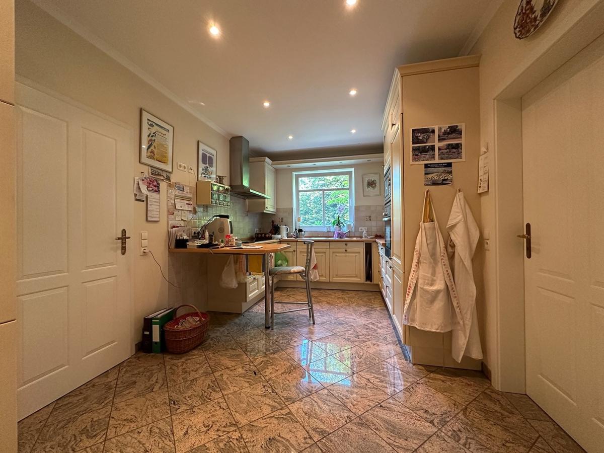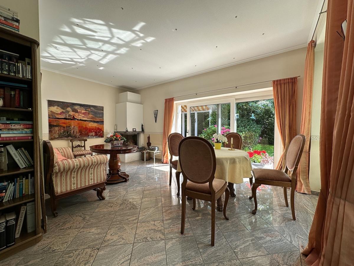 Die aktuelle interessante Raumgestaltung des Hauses lädt zum Wohlfühlen ein. Ein großer Wohn- und Esszimmerbereich mit Zugang zum etwas tiefer liegenden Kaminzimmer bietet eine offene Raumstruktur. Von hier gelangt man auf die Terrassen, den Freisitz und den eingewachsenen Ziergarten. Das Schlafzimmer verfügt über ein eigenes separates Duschbad. Das zweite Duschbad befindet sich in unmittelbarer Nähe zum Windfang und dient als Gästebad. Die Küche ist mit  einer großzügigen Einbauküche in U-Form ausgestattet. Hier befinden sich die jeweiligen Zugänge zu einem Ankleide- oder Gästezimmer, Kaminzimmer und in den Teilkeller ( 2 Räume).