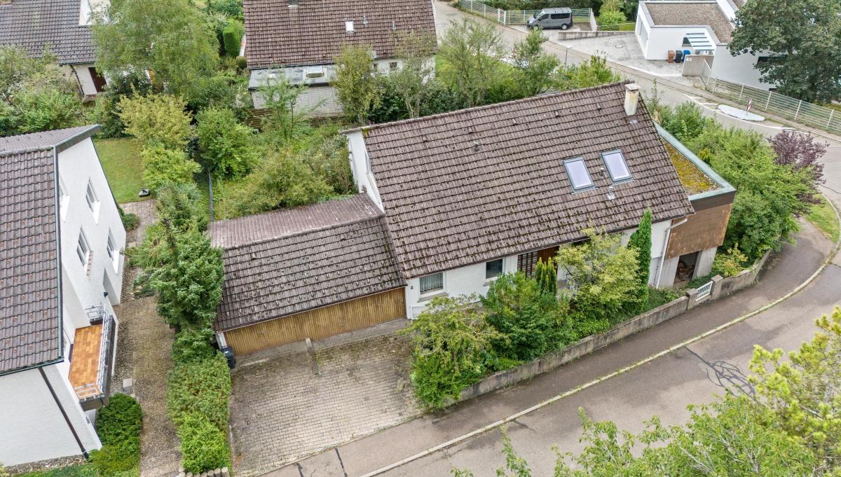 Das Haus ist leicht hangseitig gebaut und verfügt über einen Anbau aus ca. 1976, welcher das Esszimmer im Erdgeschoss vergrößerte.