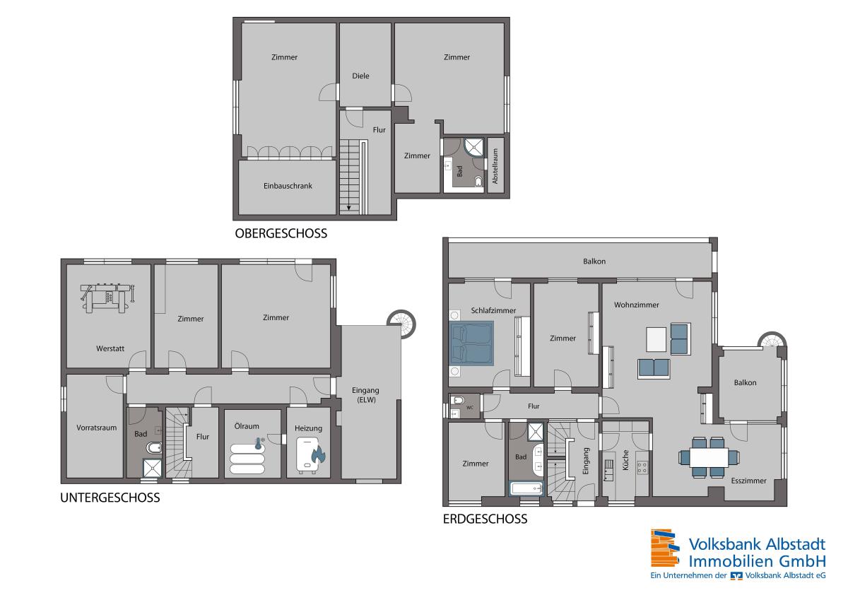 - Möglichkeit der getrennt genutzten Geschosse als Wohnungen
