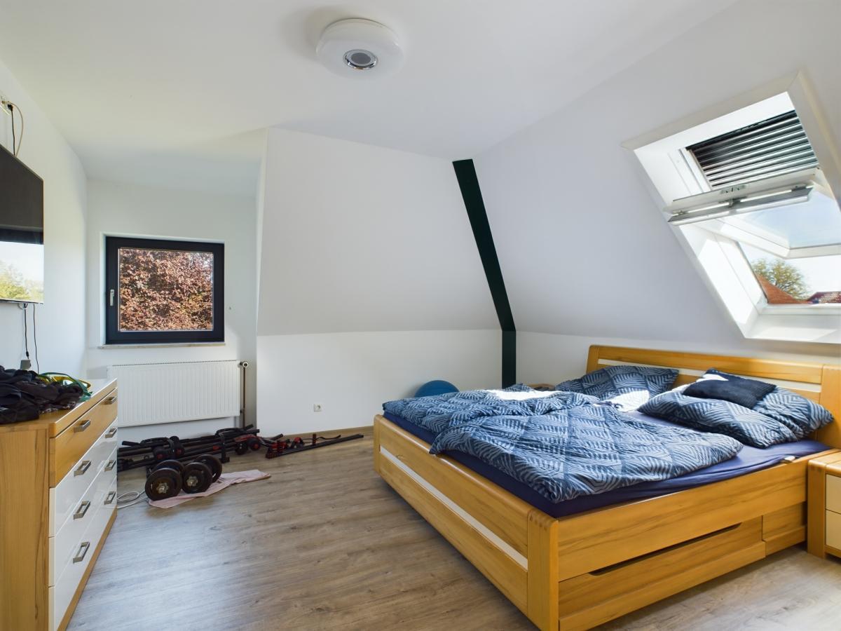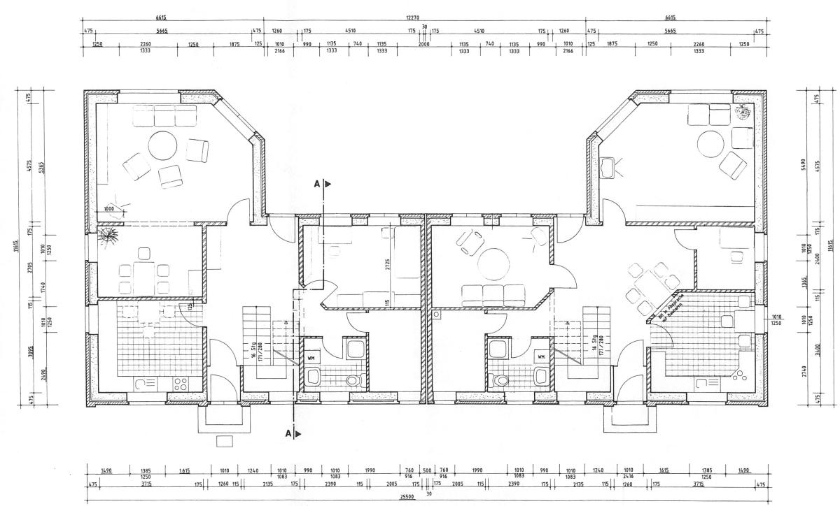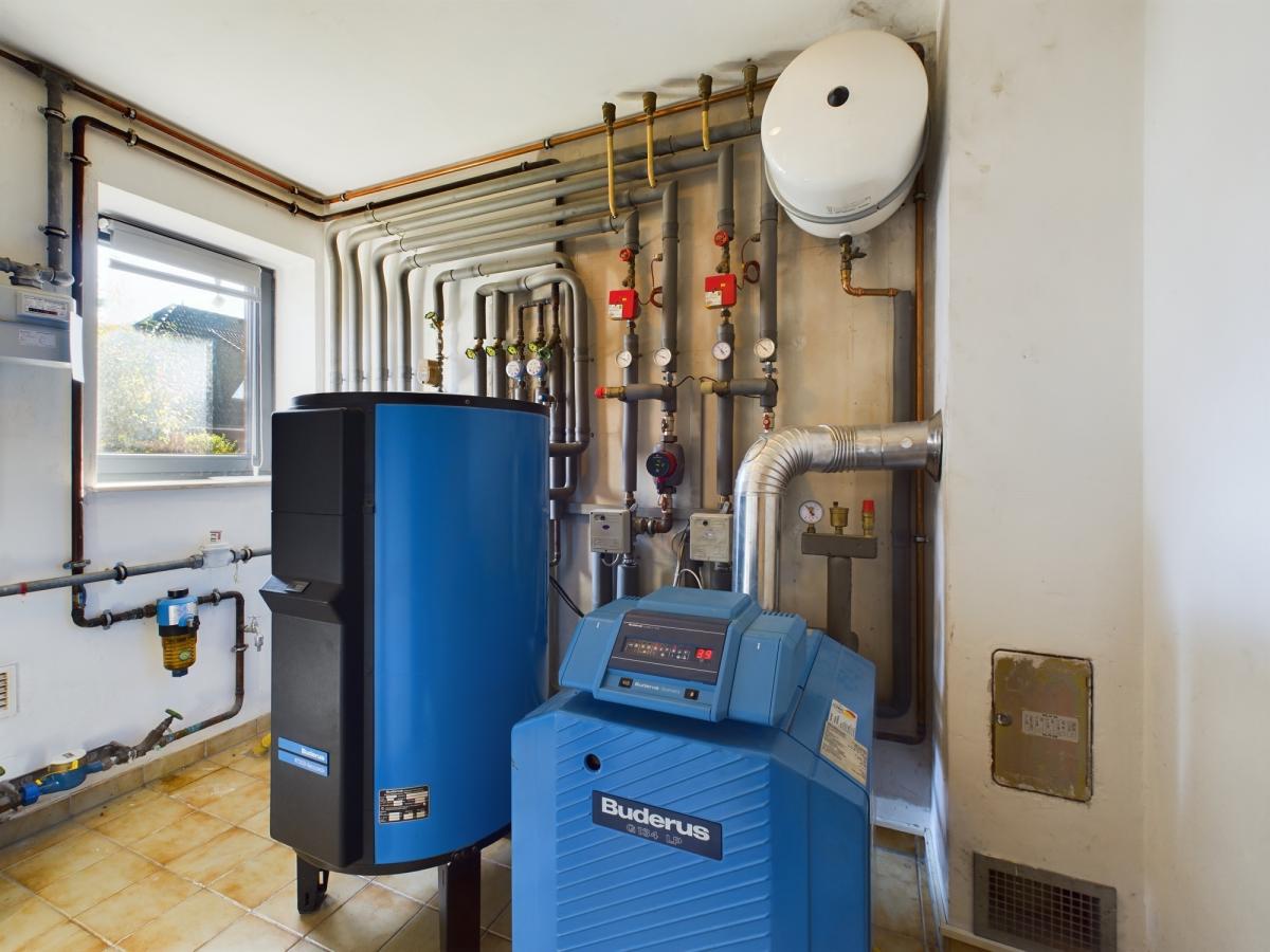 Die linke Haushälfte umfasst ca. 152,2 m² Wohnfläche, die rechte Haushälfte ca. 153,3 m². Beide Haushälften bieten je 5 Zimmer und verfügen über einen eigenen Eingangsbereich mit einer Buchentreppe ins Obergeschoss. Das Erdgeschoss umfasst jeweils ein geräumiges Wohnzimmer, eine Küche mit Einbauküche und Sitzgelegenheit sowie ein Gäste-WC mit Dusche und Fenster. Im Obergeschoss befinden sich drei weitere Zimmer und ein modernes Vollbad mit Wanne und Dusche. Die linke Haushälfte bietet zusätzlich einen Hauswirtschaftsraum mit Waschmaschinenanschluss, während die rechte Haushälfte einen Heizungsraum mit Hauswasseranschlüssen für beide Einheiten besitzt. Hier befindet sich auch die Buderus Gastherme mit Warmwasser Pufferspeicher (Bj. ca. 1995), die beide Haushälften beheizt.