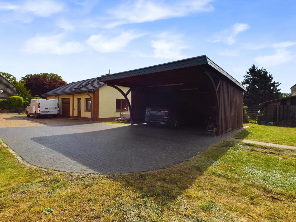 Zum Grundstück gehören weiterhin ein Doppelcarport, ein Gewächshaus und ein Hauswasserwerk zur Gartenbewässerung. Die große, nach Südwesten ausgerichtete Terrasse lädt zum Entspannen ein. Besonders attraktiv: Eine Photovoltaikanlage mit Einspeisevertrag (5,5 kW) sorgt für nachhaltige Energie, und eine SAT-Anlage ist ebenfalls vorhanden. In der Küche der linken Haushälfte sorgt eine Fußbodenheizung für zusätzlichen Komfort.
