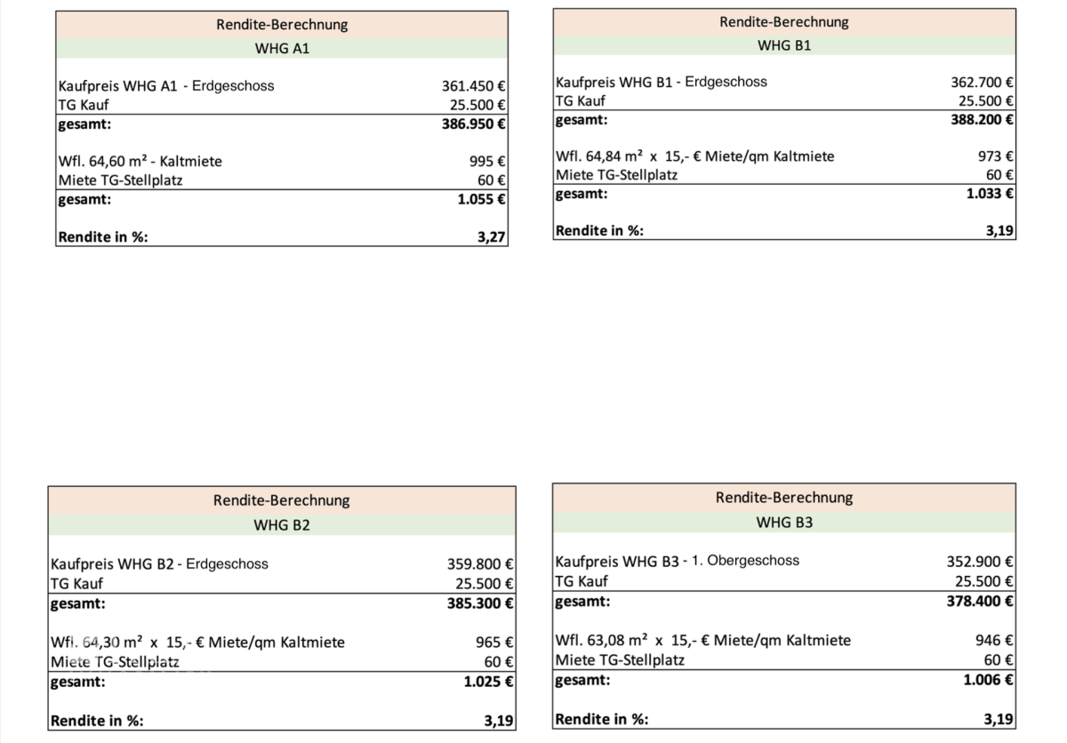 Laut Teilungserklärung ist jeder Gartenwohnung ein Tiefgaragenstellplatz zugeordnet, der für 25.500 € separat erworben werden muss. Die gesamte Wohnanlage wird durch eine vollautomatische Zentralheizung mit außen geführter Regelung beheizt, und die Wärmeerzeugung erfolgt mittels einer effizienten Luft-Wasser-Wärmepumpe.