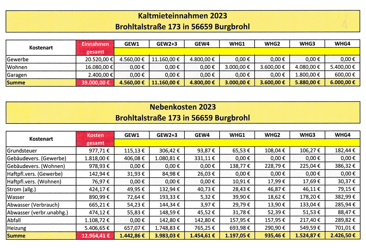 Fahrschule seit 2020 in 2024 Mieteinnahmen von 4.800,00 €