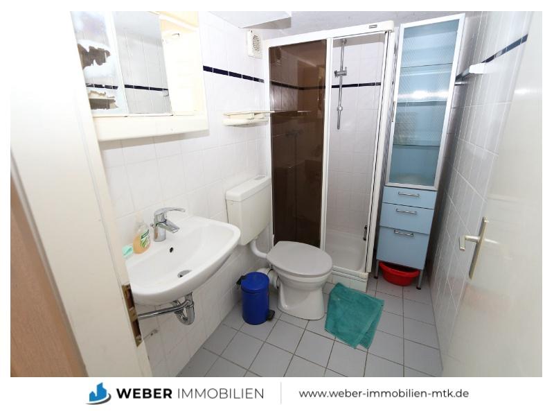 - Badezimmer (ca. 3,13 qm) mit Dusche, Waschtisch und WC