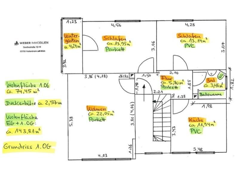 Im 1. OG ( ca. 74,45 qm):
