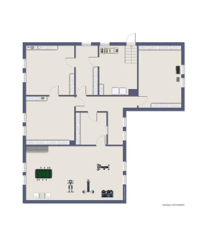 Ein interner Durchgang über alle drei Etagen ist aktuell nicht vorhanden, da die Treppe entfernt wurde. Der Zugang zum Keller befindet sich im Aussenbereich.