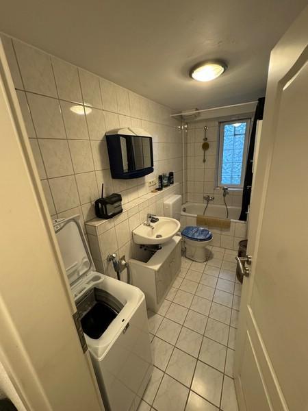 Beim Betreten der Wohnung gelangt man zunächst in den Flur, der zum Badezimmer führt. Dieses ist mit einem WC, einer Badewanne und einem Waschbecken ausgestattet.