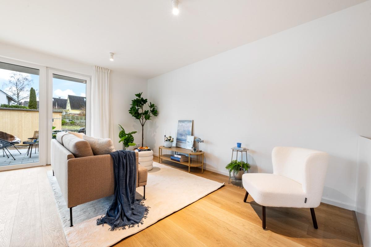Die angebotene Wohnung Nr. 3 im Erdgeschoss verfügt über ca. 62,27 m² Wohnfläche, 2 Zimmer, ein modernes Tageslichtbad mit Dusche und einen Abstellraum im Untergeschoss. Zur Wohnung gehören außerdem eine Terrasse und ein Sondernutzungsrecht an einer Gartenfläche sowie ein Carport mit separater Abstellmöglichkeit.