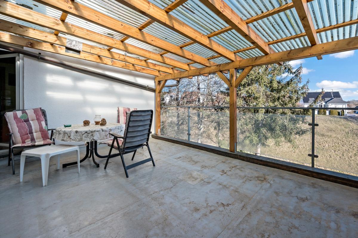 - großzügiger, überdachter Balkon mit Ausblick ins Grüne
