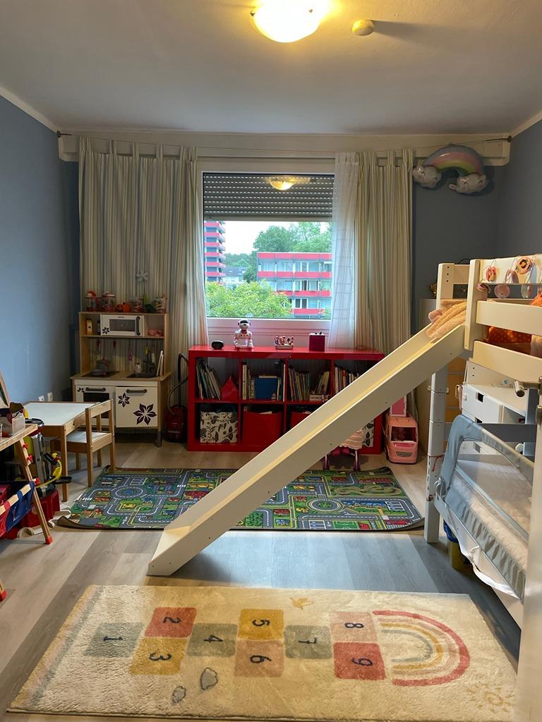 Hier liegt sie in einer Wohnsiedlung in direkter Nähe zum Chorbusch, dem vom Balkon sichtbaren Waldgebiet.
