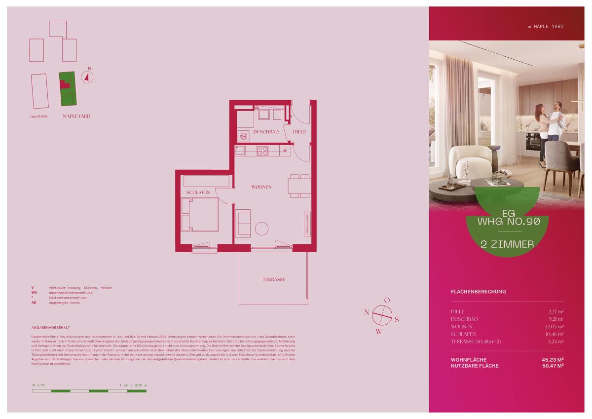 Diese kompakte 2-Zimmer-Wohnung punktet mit cleverer Aufteilung und einer großen, nach Westen ausgerichteten Terrasse – der perfekte Ort für entspannte Stunden in der Abendsonne. Das Schlafzimmer bietet genug Raum für Schrank und Bett während der offene Wohnbereich mit integrierter Küche und gemütlicher Mediaecke für ein modernes, wohnliches Ambiente sorgt. Das stilvolle Bad mit bodengleicher Dusche und praktischem Waschmaschinenanschluss rundet das durchdachte Wohnkonzept ab.