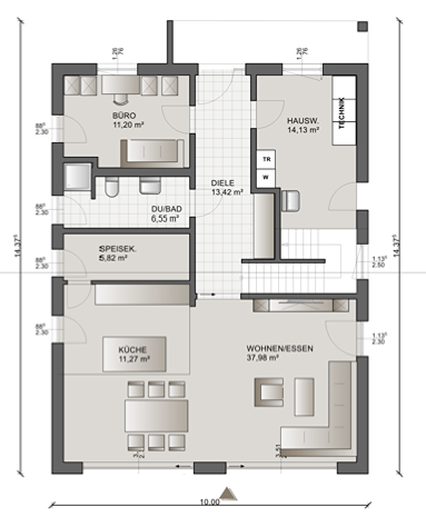 - Erhöhte Fenster- und Türmaße im Erdgeschoss