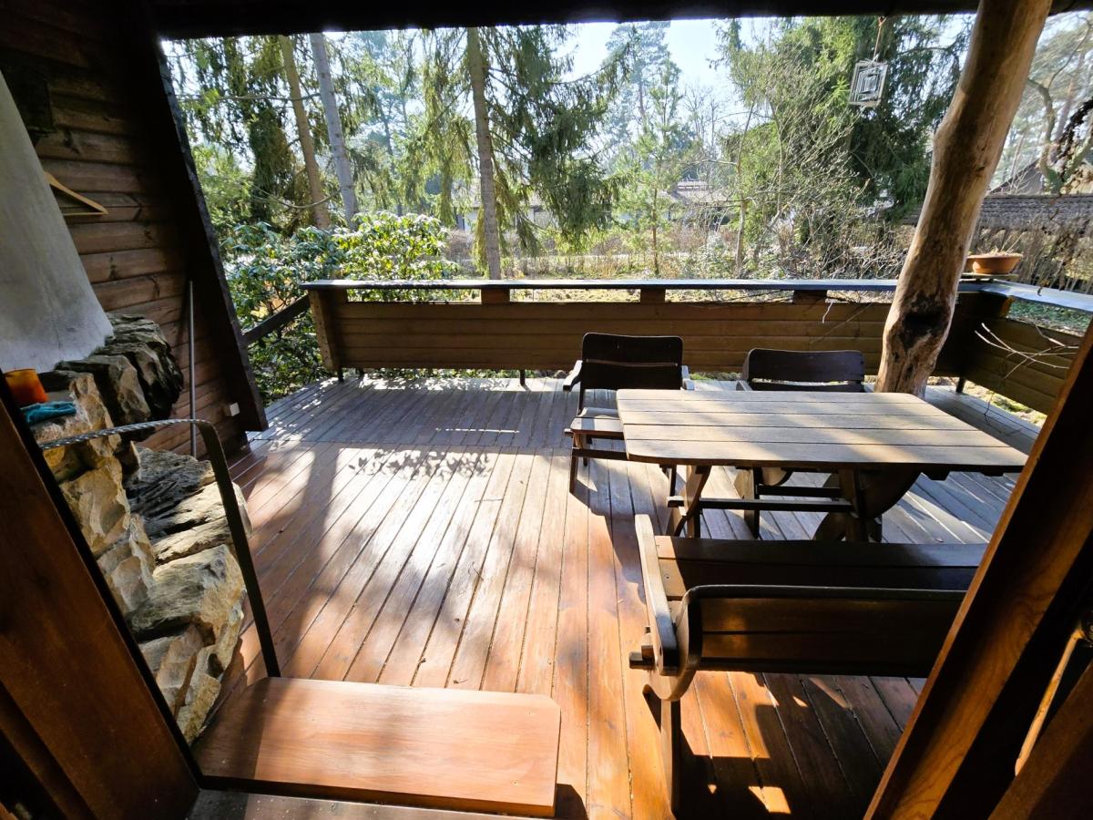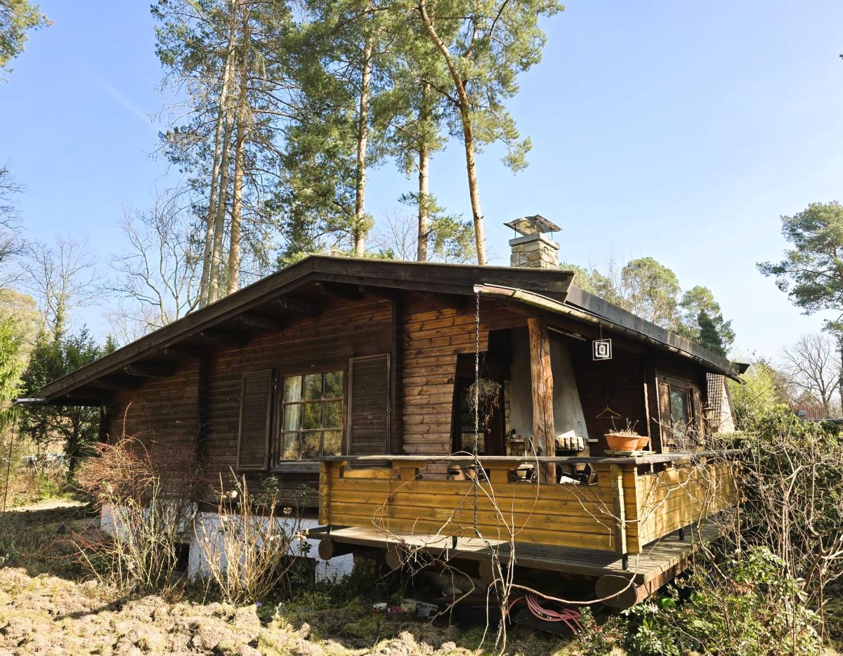 Einziehen und Wohlfühlen – naturverbundenes Wohnen im Blockhaus in massiver Holzbauweise im Stil eines Schweizer Chalets auf einem 953 m² Traumgrundstück an einem Grünzug mit direktem Zugang zur Badestelle am Groß Glienicker See – wohnen wie im Urlaub, hier können Sie Ihre Seele baumeln lassen. Das 1974 von der Firma Fouchs KG aus Bad Lauterberg/Harz als Komfort-Blockhaus Modell E 55 mit Erweiterung erbaute Holzhaus diente ursprünglich als Wochenendhaus. Durch den liebevollen Ausbau im zeitgemäßen Wohnstandard wurde es nachfolgend von den Eigentümern zum Dauerwohnsitz umgestaltet.