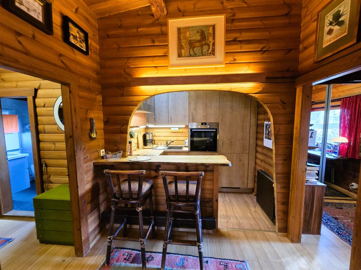 Heute präsentiert sich das kleine, aber feine Einfamilienhaus mit einer Wohnfläche von circa 61 m² mit seiner kompakten Unterteilung in 3 gut geschnittene Räume, einer zentralen offenen Küche mit Küchentresen, einem modernen Badezimmer mit Bodengleicher Walk-In-Dusche, Flur, gemütlichen Wohnbereich mit offenem Innen-und Außenkamin und Zugang zu einer ca. 20 m² großen Hochterrasse mit Südwestausrichtung in einer dem heutigen Zeitgeist entsprechenden ökologischen Holzbauweise in einem einzigartig-charmanten Wohnambiente mit hohem Wohlfühlfaktor. Der Innenbereich mit seinen Holzdecken und -wänden und das prasselnde Kaminfeuer vermitteln Wärme, Behaglichkeit und Geborgenheit.