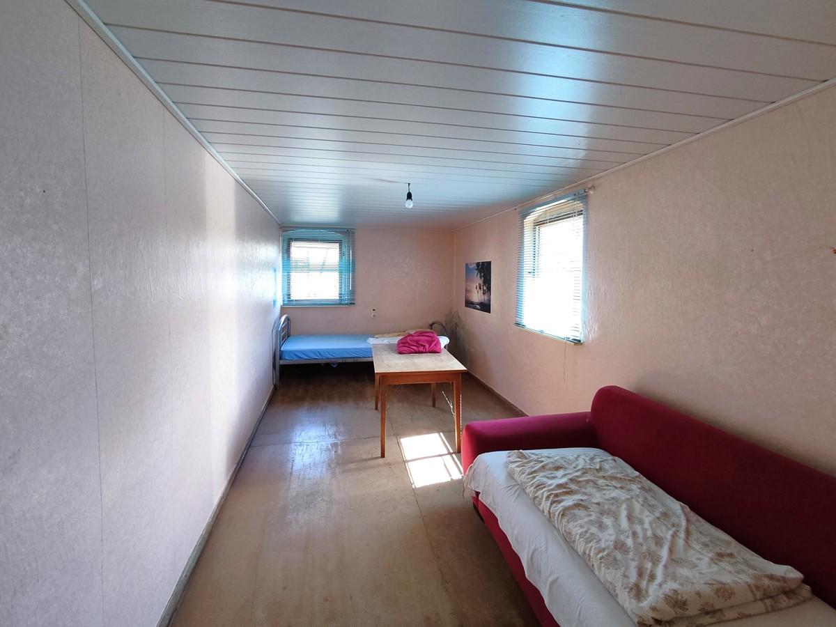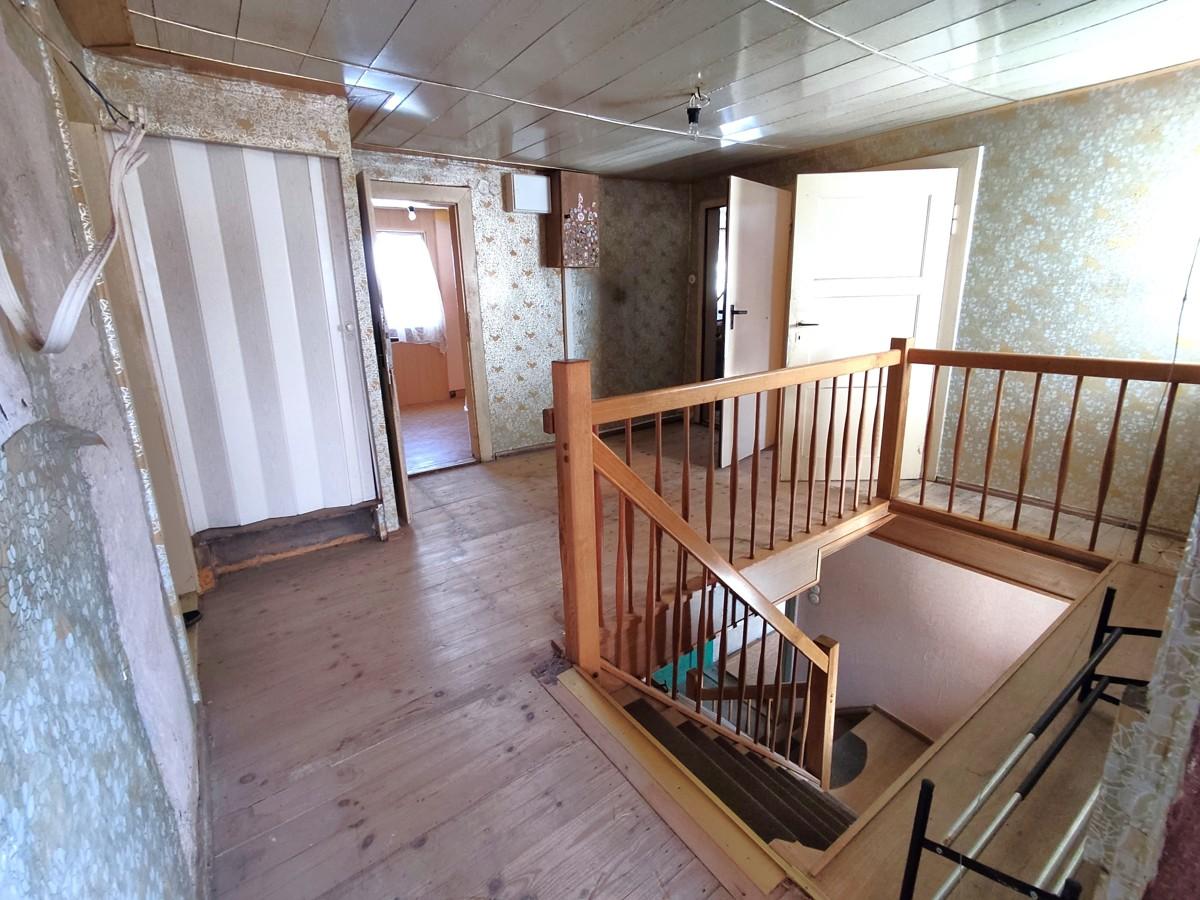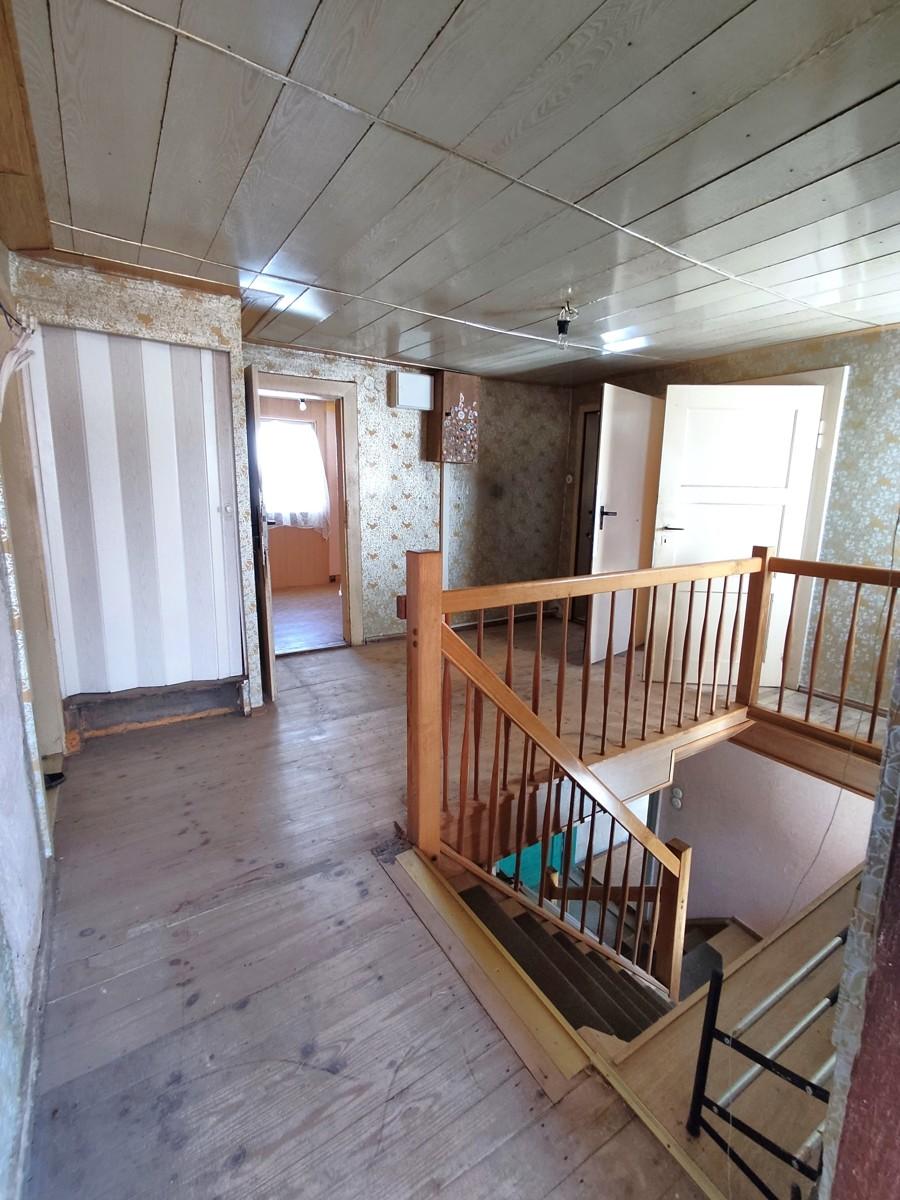 Im Erdgeschoss sind das Wohnzimmer, die Küche, ein einfaches Bad sowie der ehemalige Stall mit abgeteiltem WC. Im Obergeschoss befinden sich vier Zimmer, eine Abstellkammer sowie ein einfacher Wintergarten über der Garage.