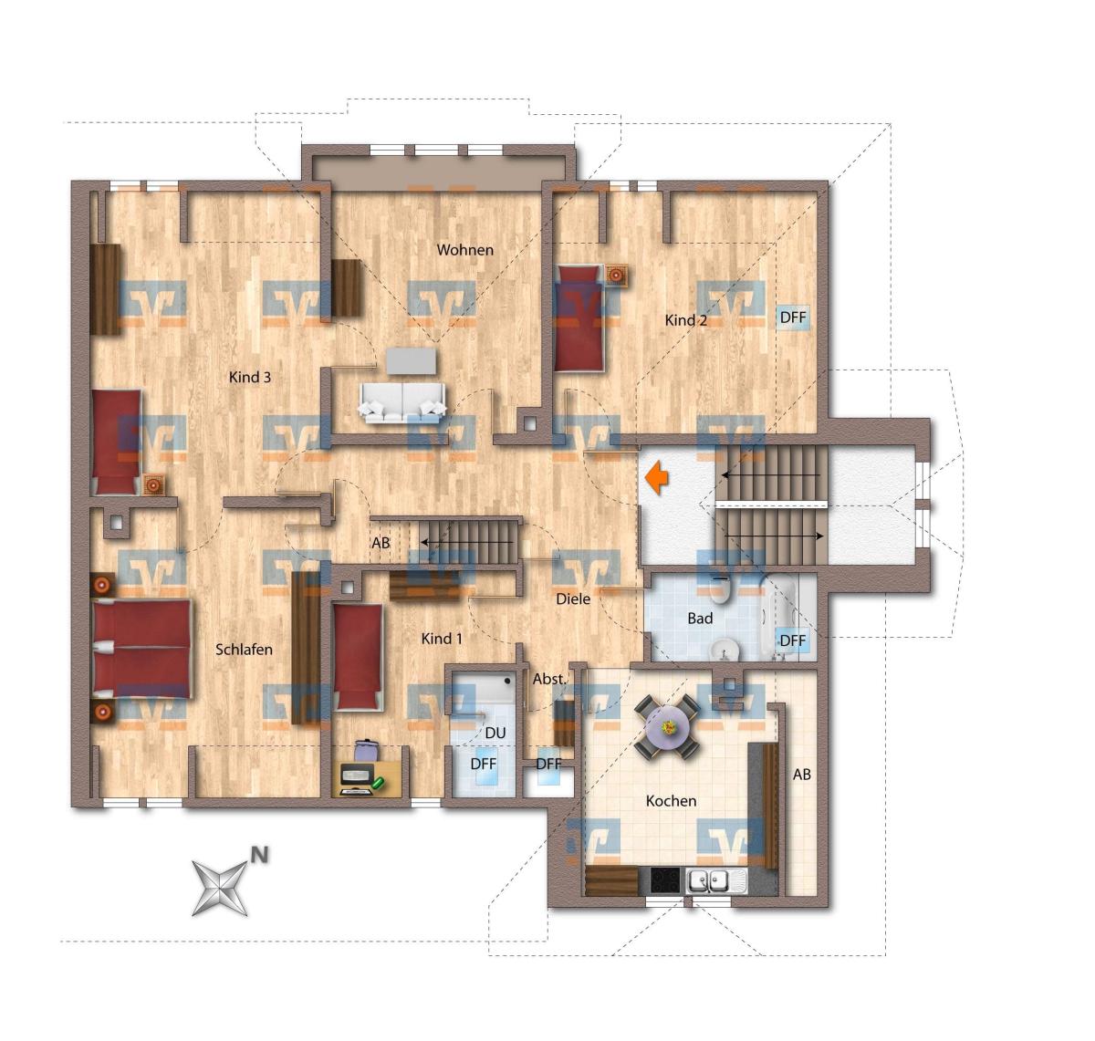 Zum Verkauf steht eine charmante 5-Zimmer-Dachgeschosswohnung in einem gepflegten Mehrfamilienhaus mit nur drei Wohneinheiten. Diese einzigartige Immobilie überzeugt nicht nur durch ihre moderne Ausstattung, sondern auch durch ihre angenehme und einladende Atmosphäre. Im Jahr 2023 wurde die Wohnung – bis auf das Badezimmer – umfassend renoviert und modernisiert, sodass sie heute in zeitgemäßem Glanz erstrahlt. Die Innendämmung der Seitenwände trägt zu einer verbesserten Energieeffizienz und einem angenehmen Wohnklima bei.