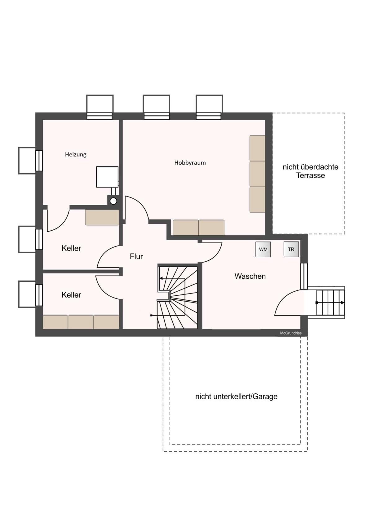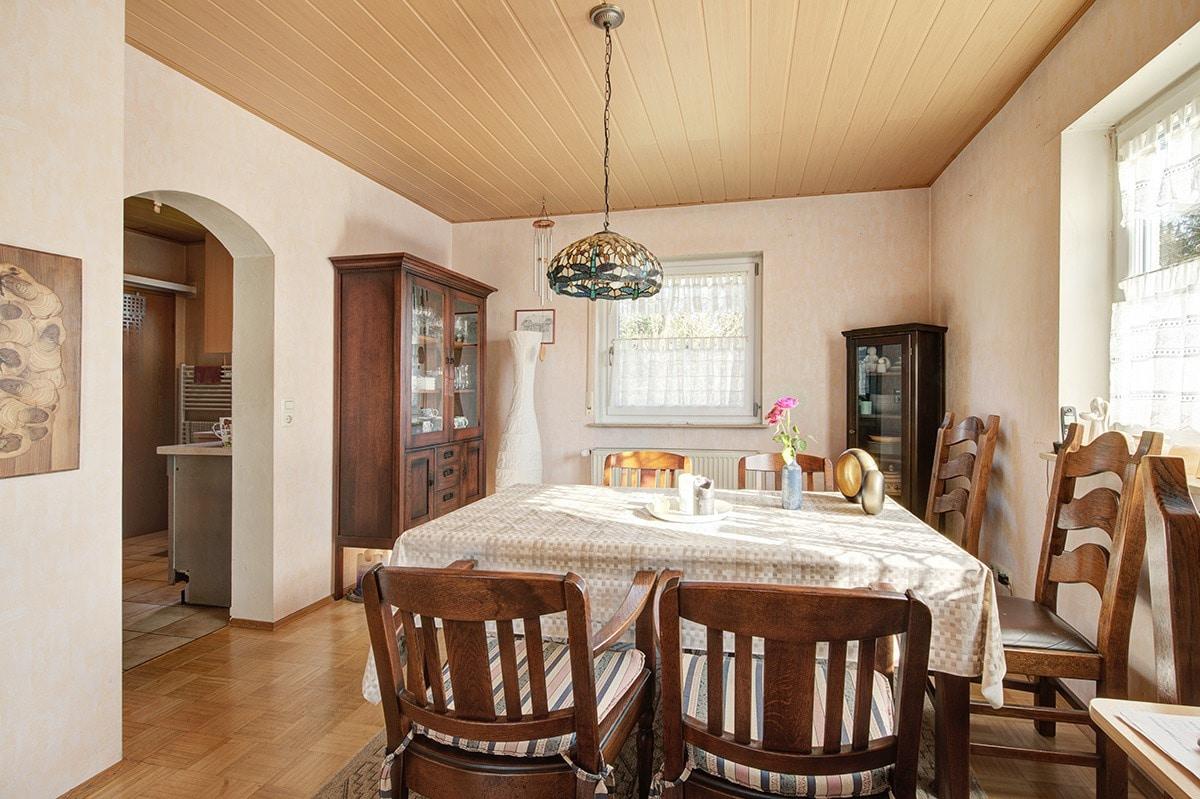 Das Wohnhaus verfügt über eine gelungene und großzügige Raumaufteilung. Im Erdgeschoss befindet sich eine Diele, ein großzügiges Wohn-/ Esszimmer mit Zugang zur Terrasse, die Küche mit Speisekammer, ein Schlafzimmer und ein Bad mit Dusche. Im Dachgeschoss finden Sie vier weitere Schlafräume und ein geräumiges Bad mit Dusche. Das Haus ist voll unterkellert. Im Kellergeschoss ist neben typischen Kellerräumen auch ein großer Hobbyraum. Die genaue Aufteilung entnehmen Sie gerne den beigefügten Grundrissen.