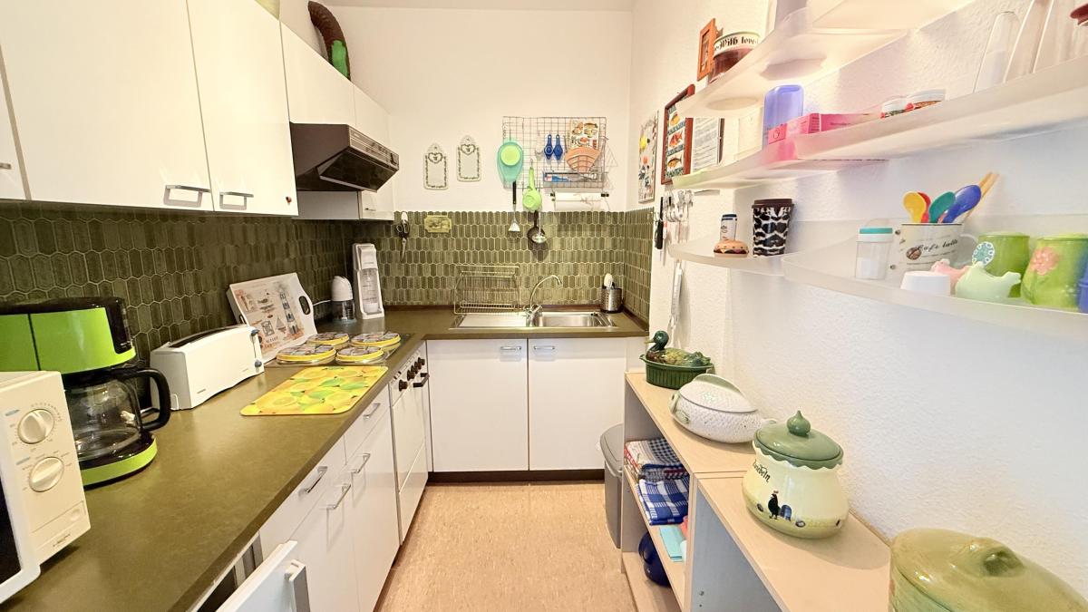 Die Wohnung umfasst 1,5 Zimmer. Dazu gehören neben dem großzügigen Wohnzimmer ein kleines Schlafzimmer sowie ein komfortables Badezimmer mit Dusche und WC. Zusätzlich verfügt sie über eine Küche mit Einbauküche, einen praktischen Abstellraum und eine Loggia in Süd-/Westlage.