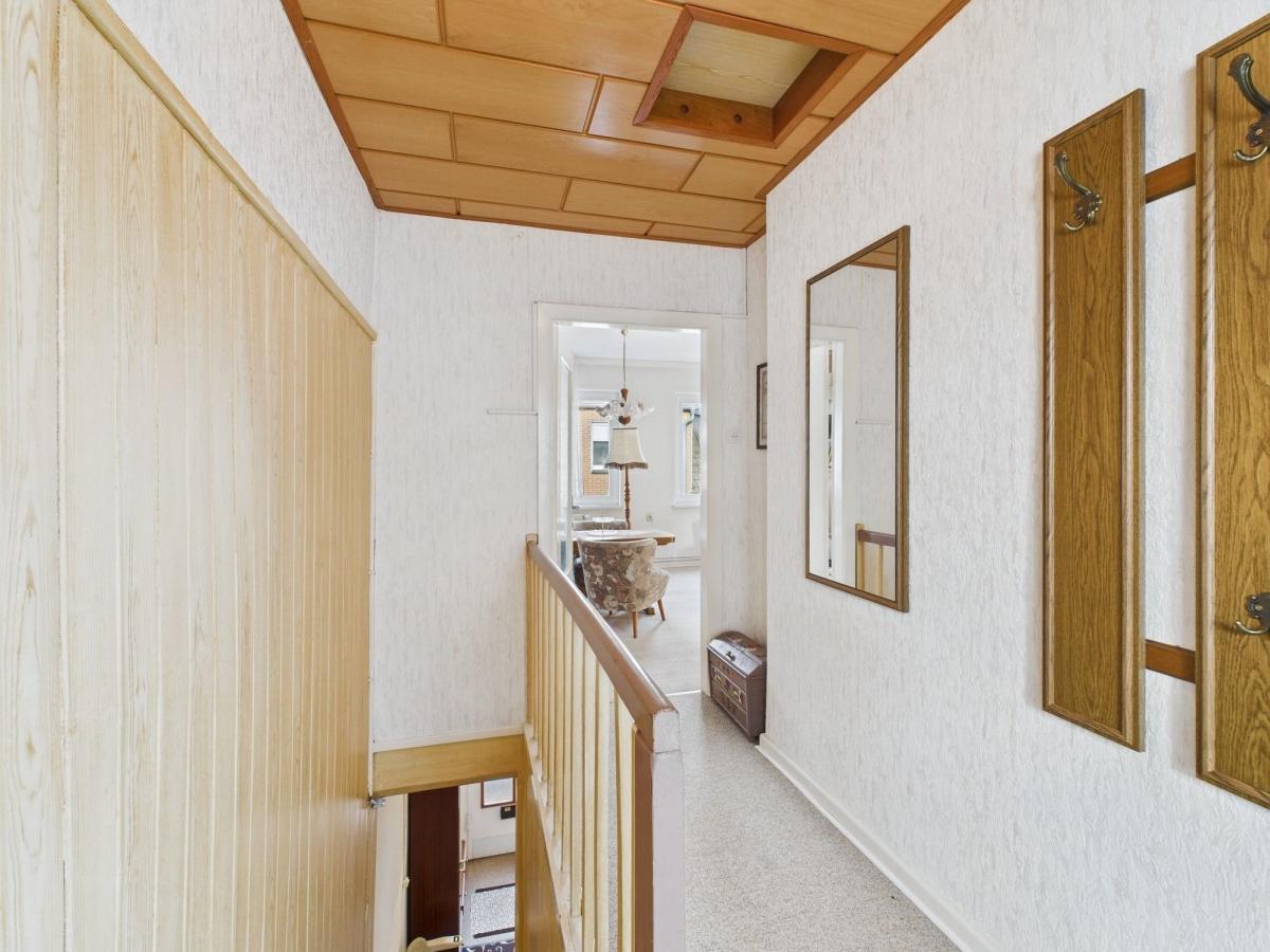 Vom zentralen Flur mit seiner charaktervollen Holzdecke führt zudem eine Dachluke in den Bodenraum, der praktischen Stauraum eröffnet.