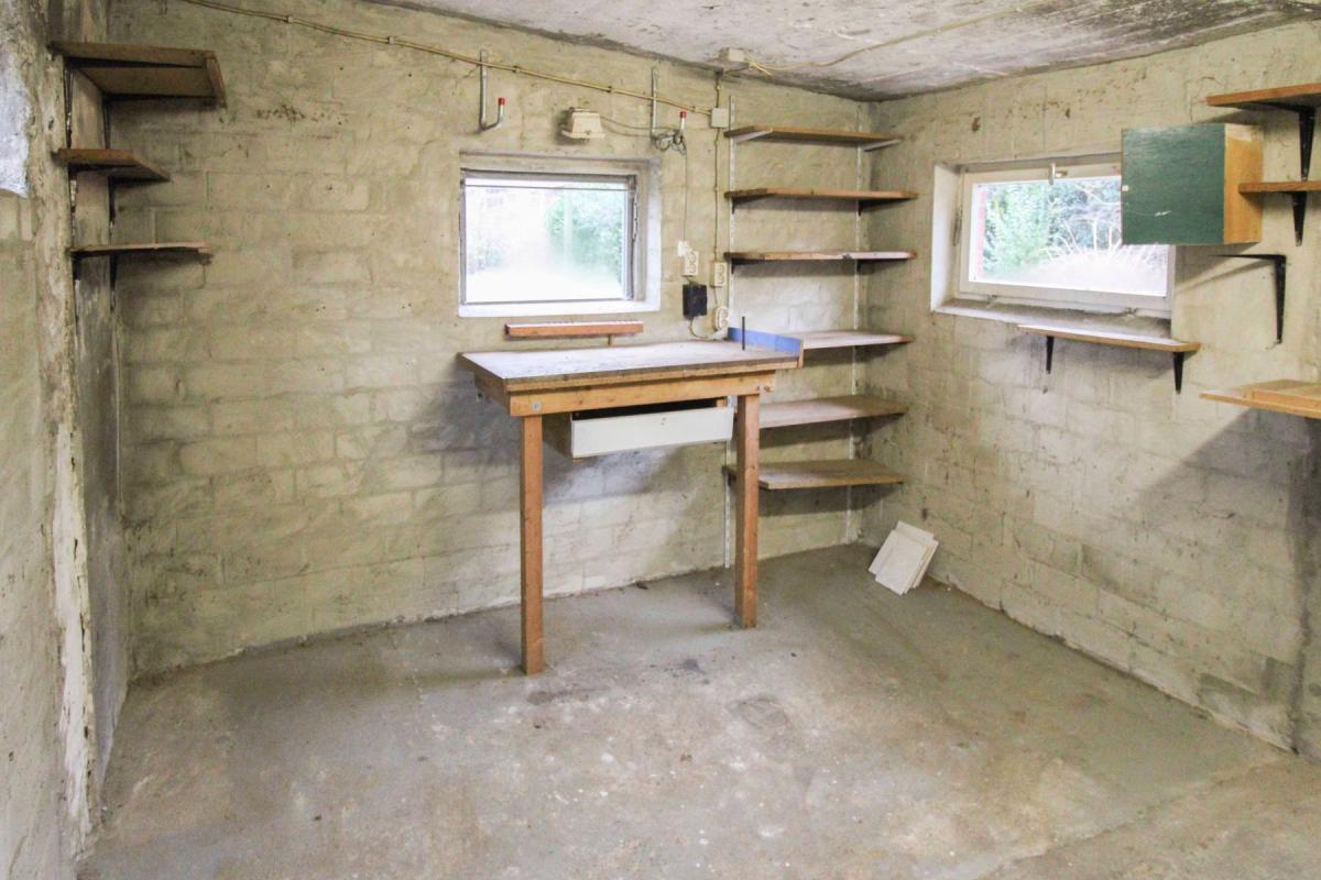 Neben dem großzügigen Wohnbereich, der Küche und dem Duschbad im Erdgeschoss gibt es einen Heizungs- und Hauswirtschaftsraum mit Ausgang in den Gartenbereich. Darüber hinaus punktet die Immobilie mit einer kleinen Werkstatt und einer Garage. Auf der Auffahrt und im Vorgarten könnte man ein oder zwei weitere Fahrzeuge und Fahrräder platzieren.