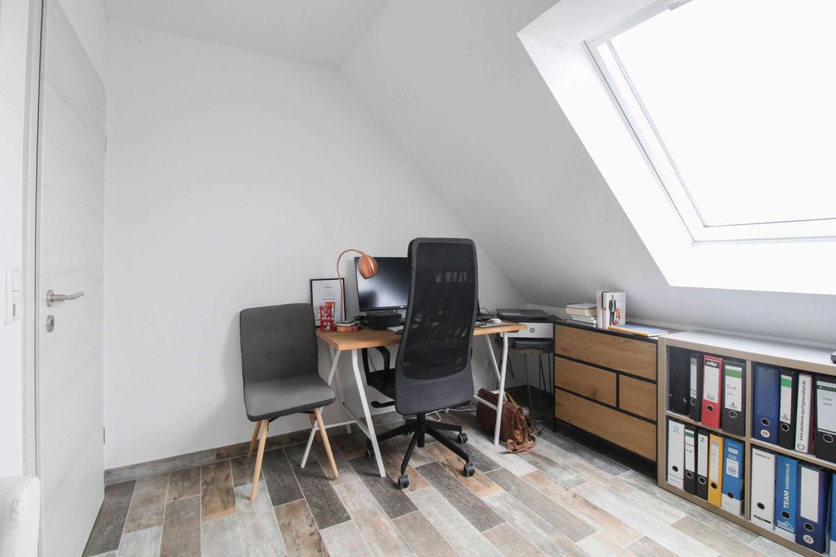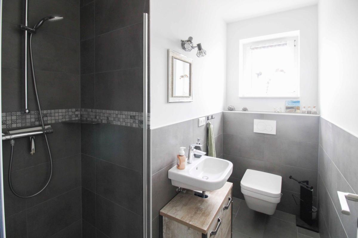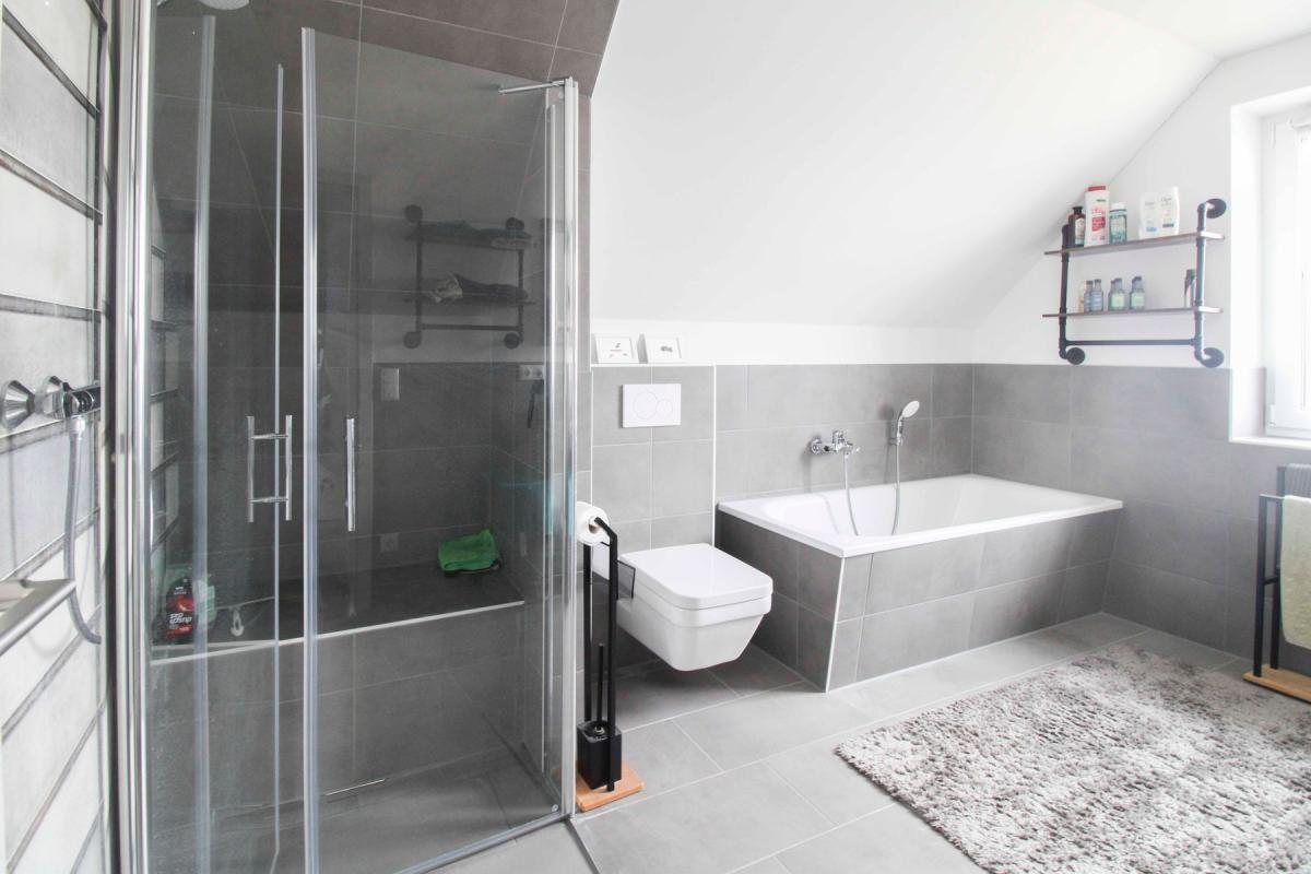 Rund 103 m² Wohnfläche mit 4 Zimmern bietet unter anderem 3 Schlafzimmer und somit ideale Bedingungen für Paare und kleine Familien. Ein Badezimmer mit Dusche und Badewanne im Dachgeschoss sowie ein Gäste-Duschbad im Erdgeschoss zählen ebenfalls zum Grundriss der Immobilie. Das Highlight dieser Haushälfte ist die über 40m² große offene Wohnküche mit moderner Einbauküche sowie Blick in den Außenbereich, welcher durch zwei große Terrassenfenster ermöglicht wird. Sowohl das Erd- als auch das Dachgeschoss des Hauses sind mit pflegeleichtem Fliesenboden sowie Fußbodenheizung ausgestattet. Für schnelles Internet ist bereits ein Glasfaseranschluss im Haus vorhanden.