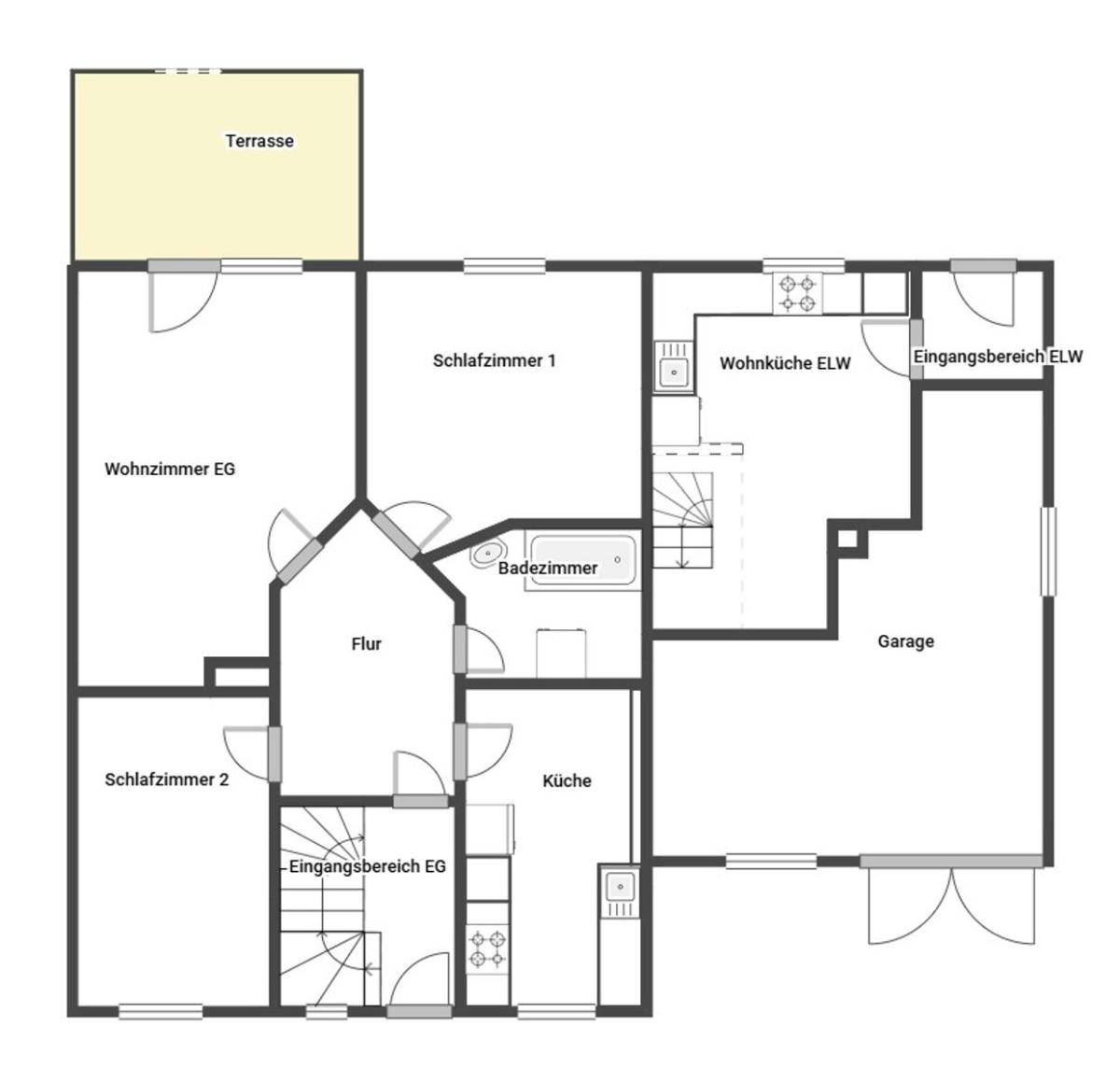 Zur Verfügung stehen Ihnen 7 Zimmer, darunter 5 Schlafzimmer (zusätzlich kommen dazu 2 ausgebaute Räume im Dachgeschoss und der Bereich der Garage), auf ca. 154 m² Wohnfläche (ca. 400 m² Gesamtfläche) . Zum Grundriss der Immobilie gehören außerdem 3 Badezimmer mit Badewanne/Dusche. Die Ausstattung mit drei Einbauküchen erleichtert den zukünftigen Bewohnern den Alltag. Das ca. 418 m² große Grundstück bietet reizvolle Entspannungsmöglichkeiten im Freien. Der Garten mit Gartenhaus und Terrasse bietet eine gemütliche und intime Atmosphäre und verspricht Momente der Entspannung.