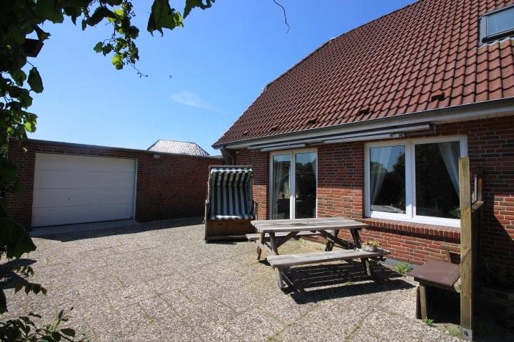 Eine große Doppelgarage im vorderen Grundstücksbereich bietet Platz für 2 PKW. Einer der Garagenplätze ist komplett durchfahrbar und führt bei Bedarf direkt in den Gartenbereich.