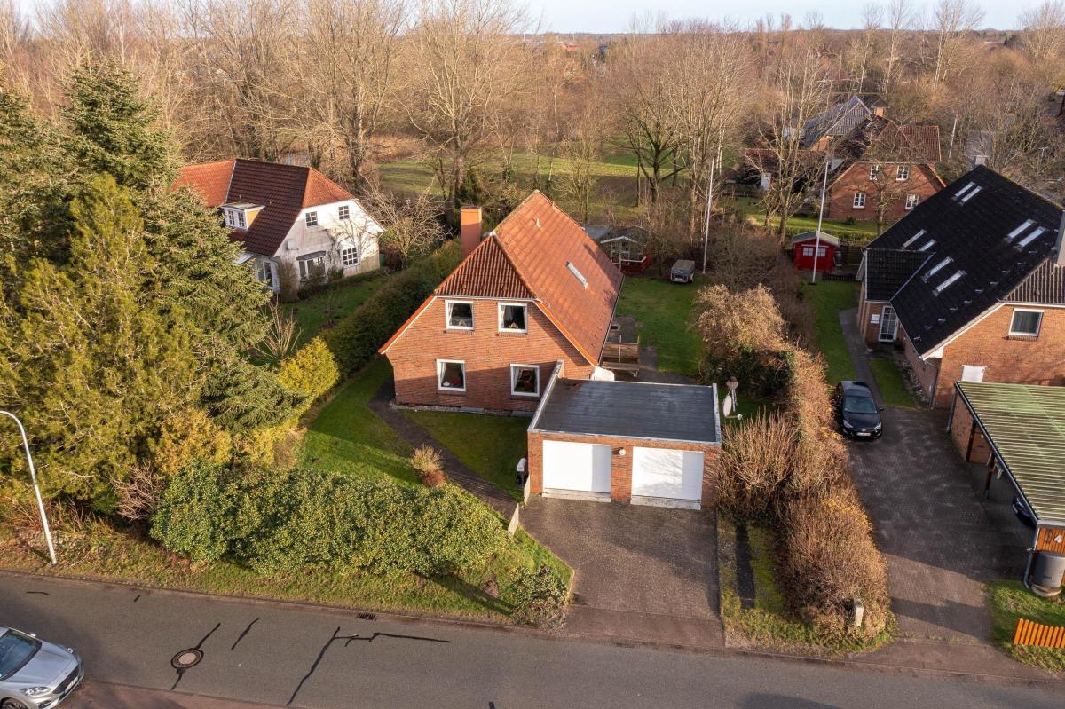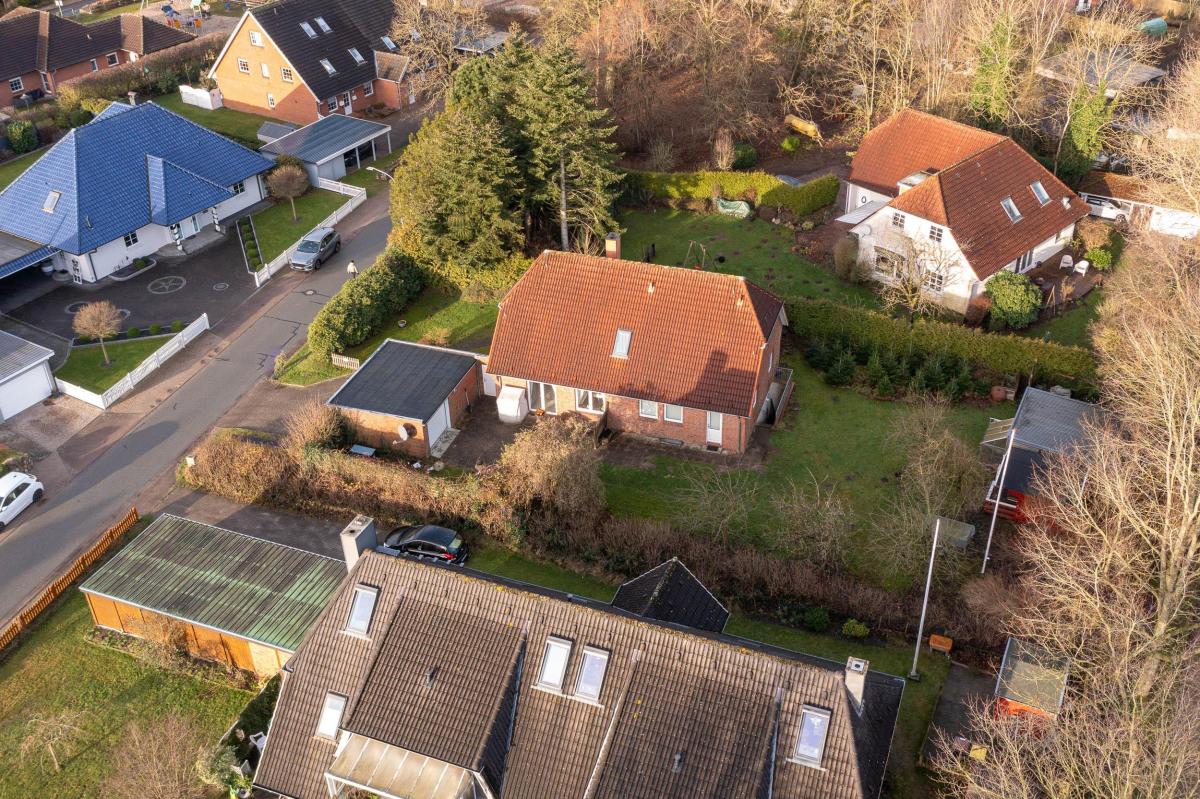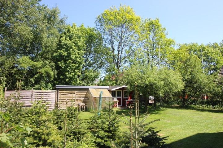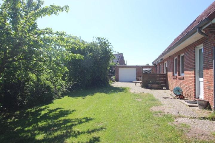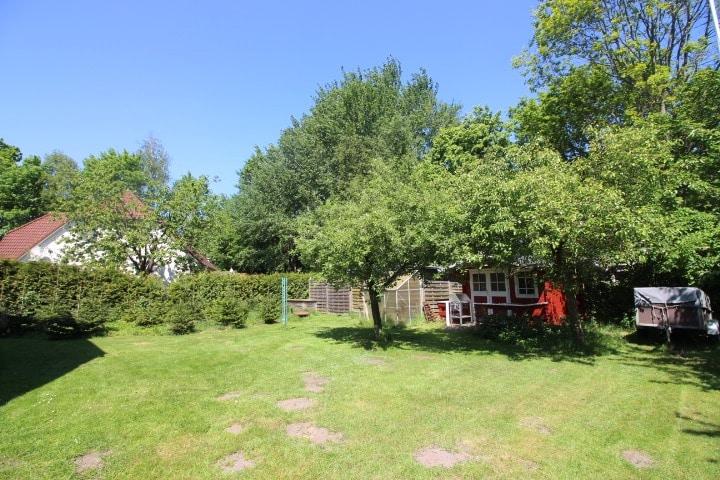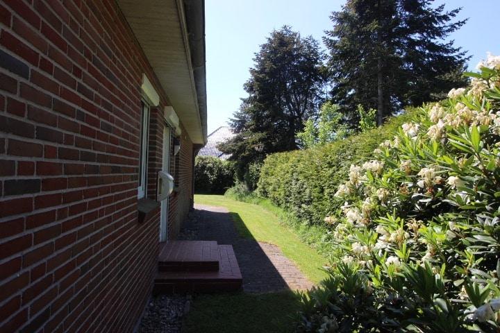 Das ca. 1000 qm große Grundstück befindet sich unweit vom Wiesharder Markt in ruhiger Lage und grenzt an den Bürgerpark Handewitt an. Der Garten ist schön eingewachsen und wurde natürlich, mit verschiedenen Obst- und Nadelbäumen sowie Büschen angelegt.