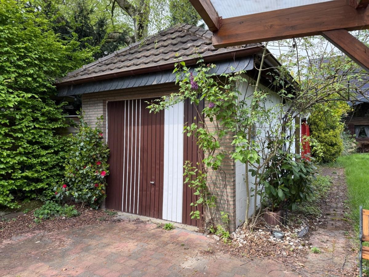 Im Jahr 1970 wurde eine freistehende Garage errichtet, die über eine lange, gepflasterte Einfahrt erreichbar ist. Der davor entstandene, kleine Innenhof ist ein typisches und gemütliches Merkmal älterer Wohnhäuser. 1975 wurde das Wohnhaus um einen Anbau erweitert, der ein zusätzliches Schlafzimmer beherbergt. An diesen Anbau schließt sich eine solide überdachte Terrasse an, von der aus man einen schönen Blick in den Garten bis hin zum Saunahaus am Grundstücksende genießt – ideal auch für alternative Nutzungen.