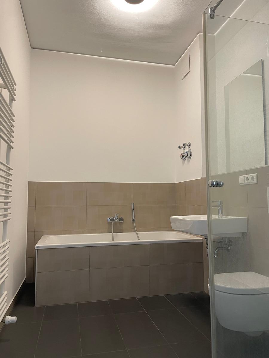 Sie verfügt außerdem über ein geräumiges Bad mit Badewanne + Dusche, ein Gäste-WC und eine zum Wohnzimmer hin offen gestaltete Küche.