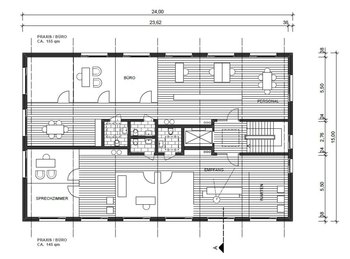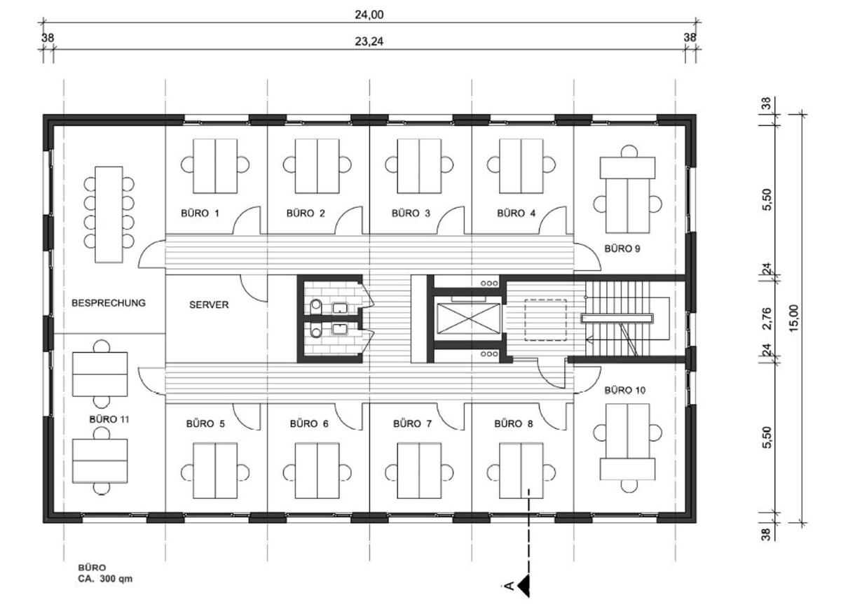 - Büroräume auf fünf Geschossen